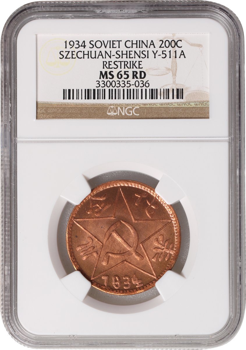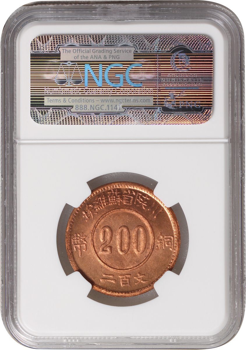 1934年川陝省蘇維埃200文銅幣,後鑄版,NGC MS 65RD