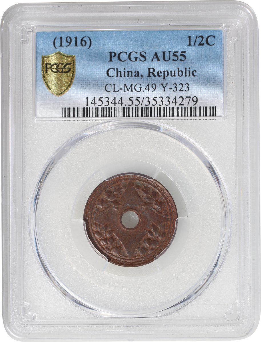 Republic of China, a pair of copper 1/2 and 1 cent, 1916, (CL-MG.49, Y-323; Y-324), graded PCGS AU55 and MS62BN respectively (2)