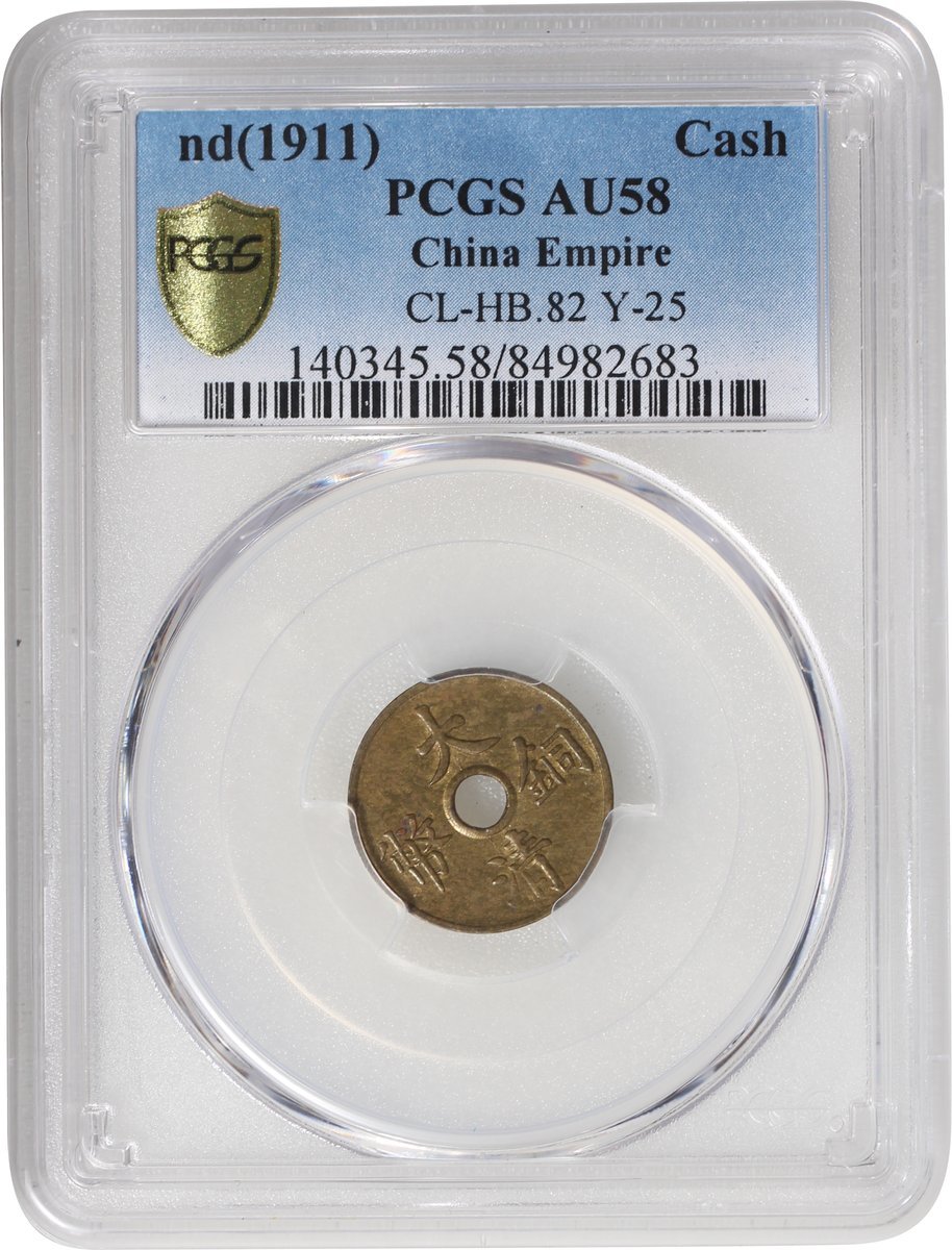 1911年清朝一文銅幣,以及民國二十五年布圖一分銅幣,前者評PCGS AU58,後者AU