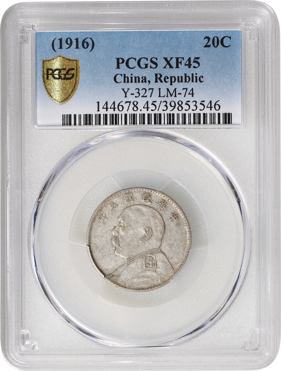 China, Republic, a trio of silver 20 cents, Year 5(1916), Yuan Shih Kai, LM-74, one PCGS XF 40 and the rest XF45.(3)