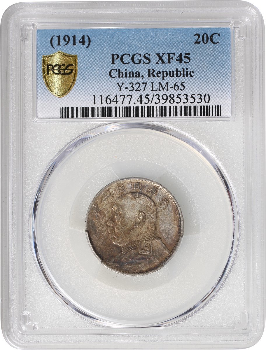 China, Republic, a pair of silver 20 cents, Year 3(1914), Yuan Shih Kai, LM-65, both PCGS XF45.(2)
