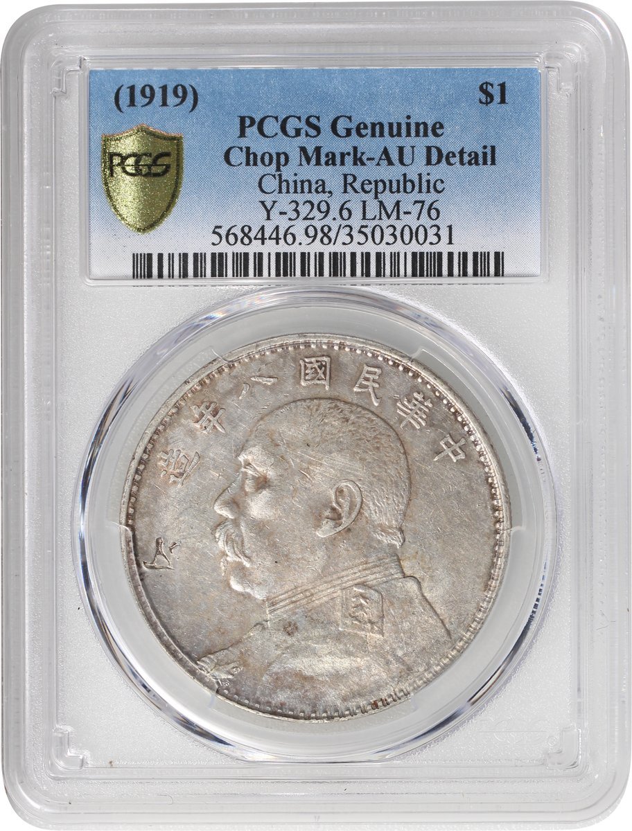 民國八年袁世凱像壹圓,PCGS AU Detail,有戳記