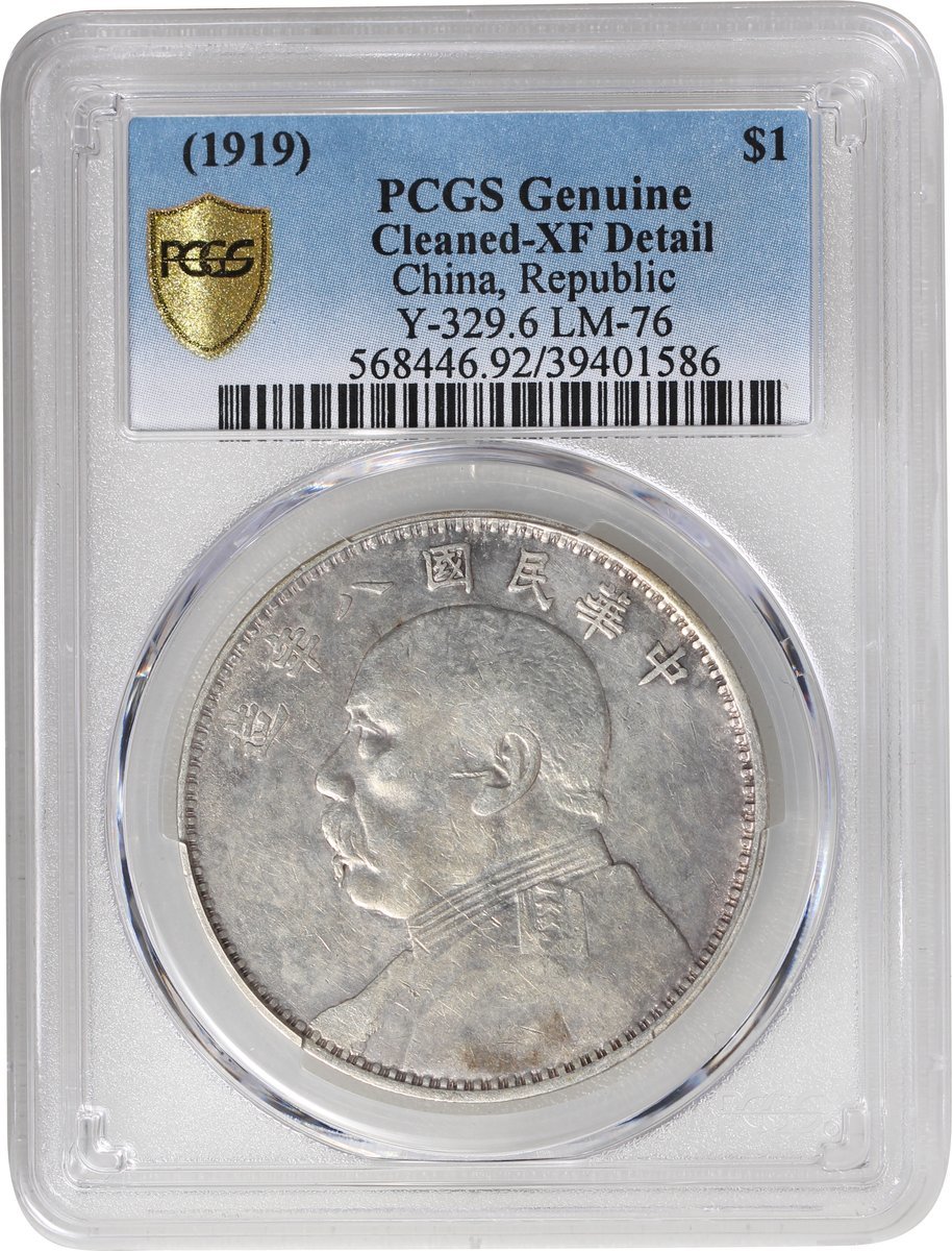 China, Republic, silver $1, Year 8(1919), Yuan Shih Kai, PCGS XF Detail, cleaned.