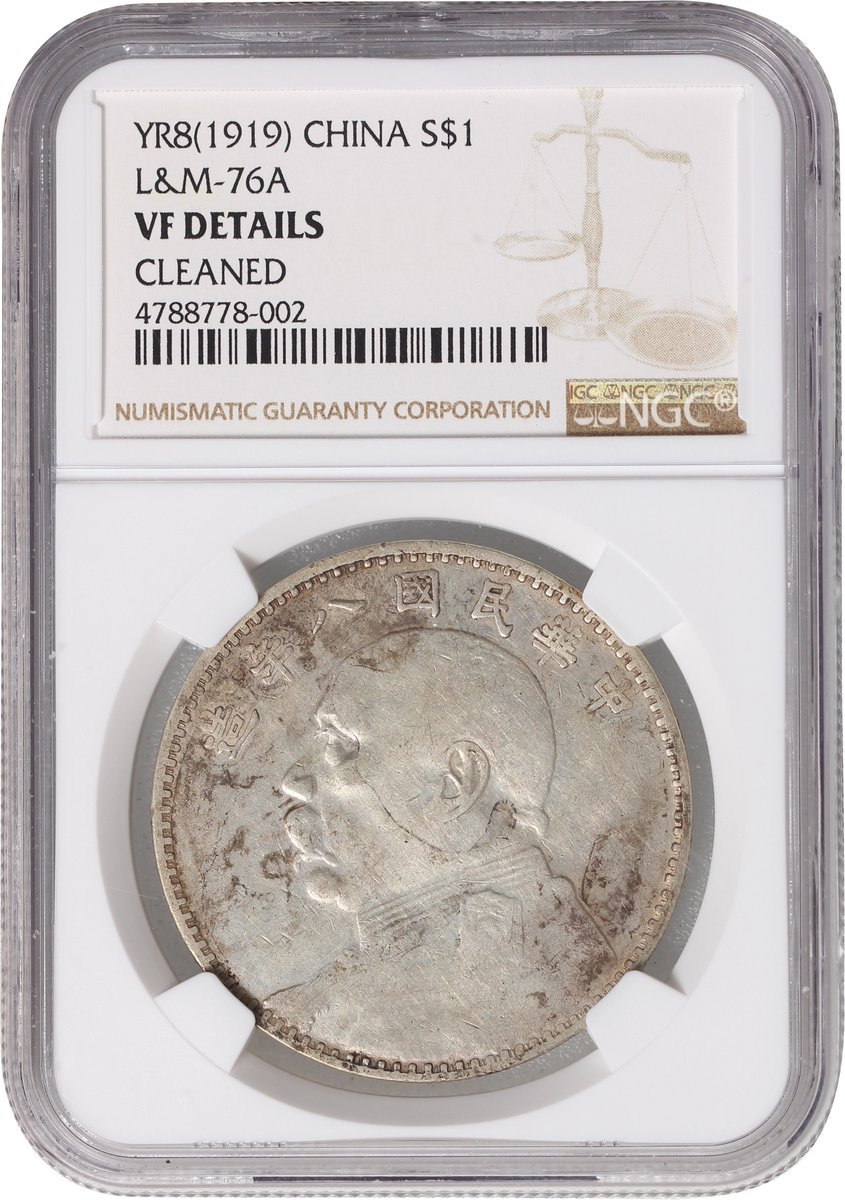 民國八年袁世凱像壹圓,NGC VF Details,帶棕調包漿,有清洗