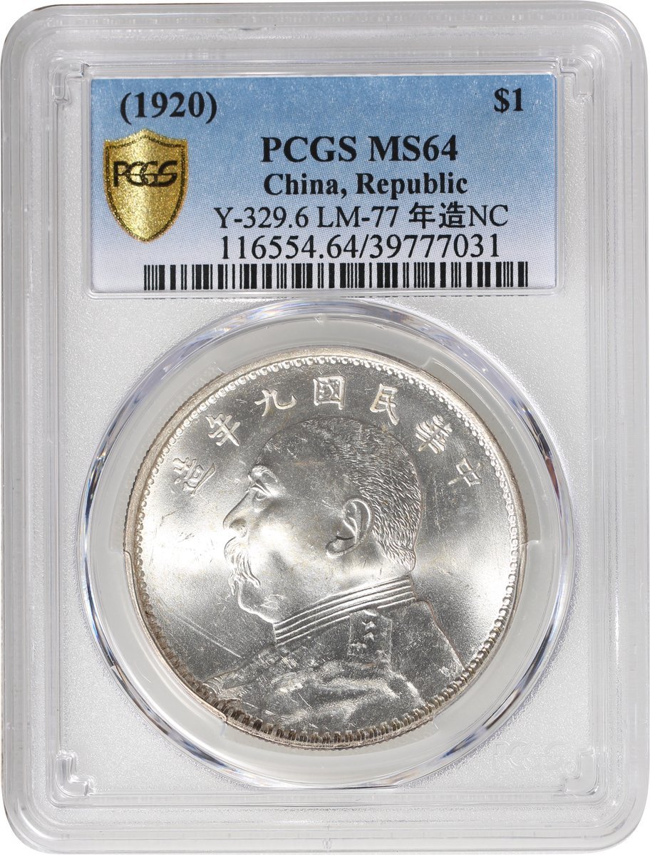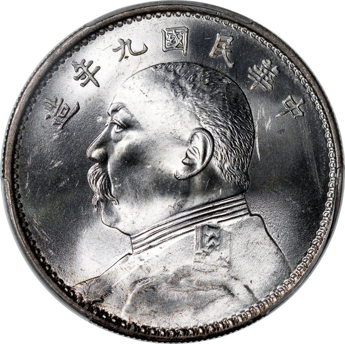 民國九年袁世凱像壹圓,精髮版,PCGS MS64,邊緣有輕微氧化,罕見