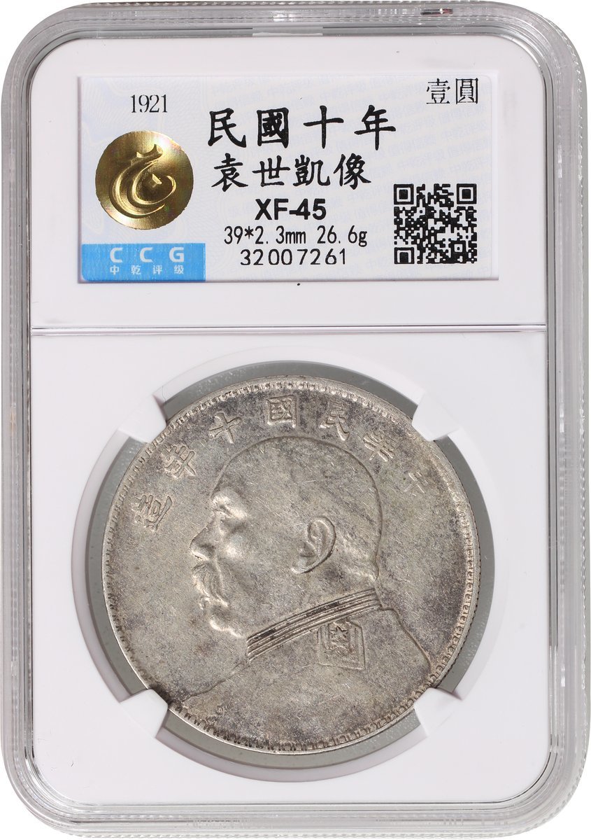 民國十年袁世凱像壹圓銀幣,包漿均勻,中乾XF45