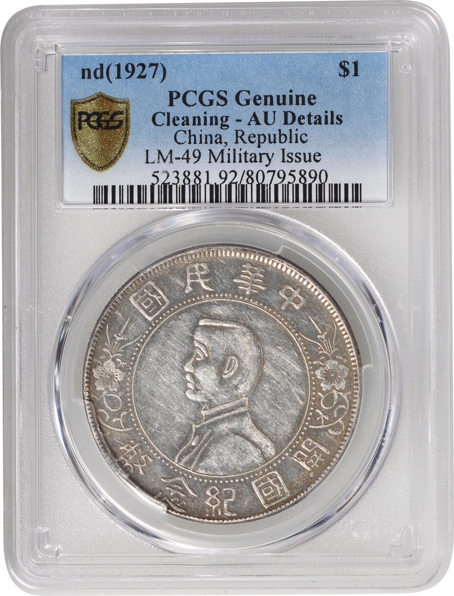 China, Republic, silver $1, ND(1927), Memento, Military Issue, PCGS AU Detail, cleaning.