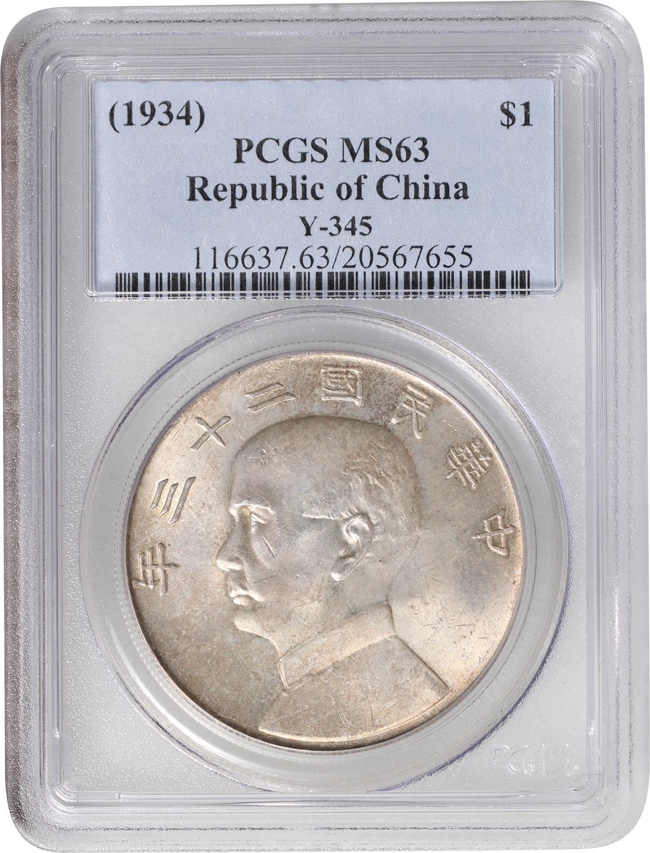 民國二十三年孫中山像帆船壹圓,PCGS MS63,舊評