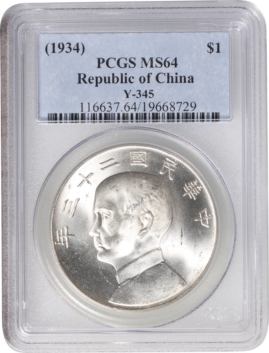 Republic of China, silver $1, 1934, 'Junk' dollar, (Y-345), PCGS MS64 in old label with good lustre