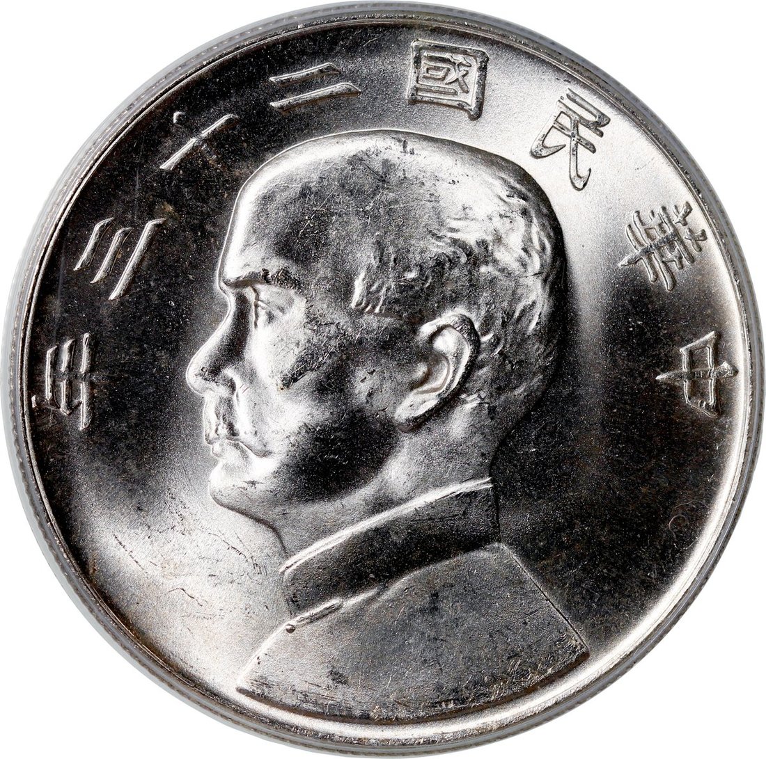 民國二十三年孫中山像帆船壹圓,PCGS MS64