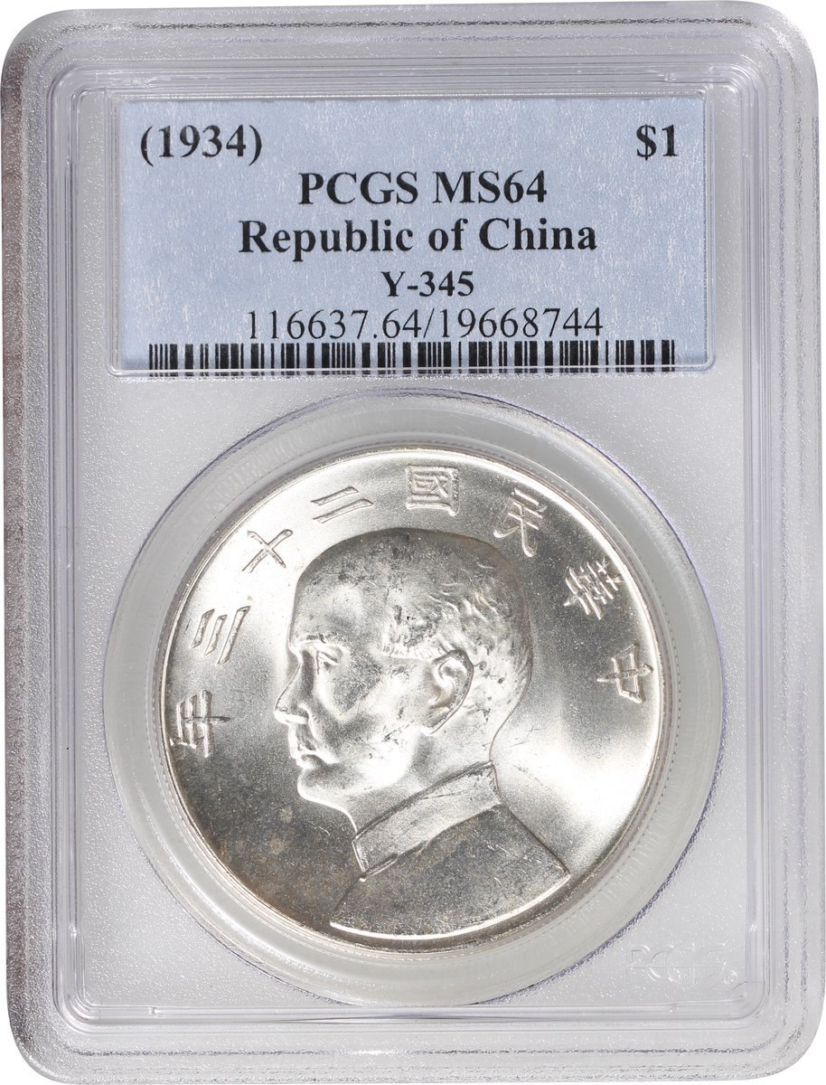 Republic of China, silver $1, 1934, 'Junk' dollar, (Y-345), PCGS MS64 in old label with good lustre