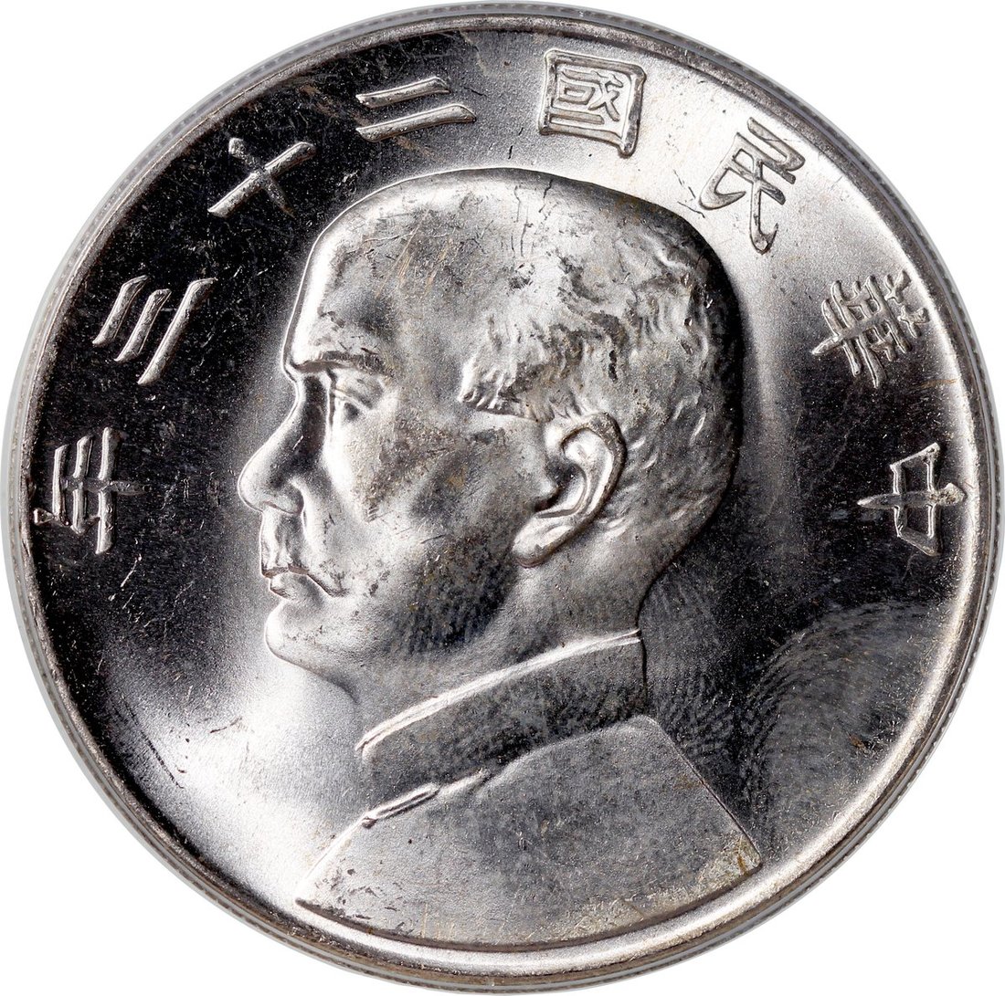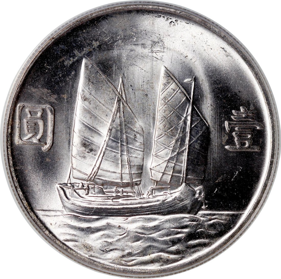 民國二十三年孫中山像帆船壹圓,PCGS MS64