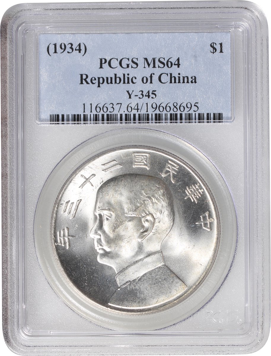 Republic of China, silver $1, 1934, 'Junk' dollar, (Y-345), PCGS MS64 in old label with good lustre