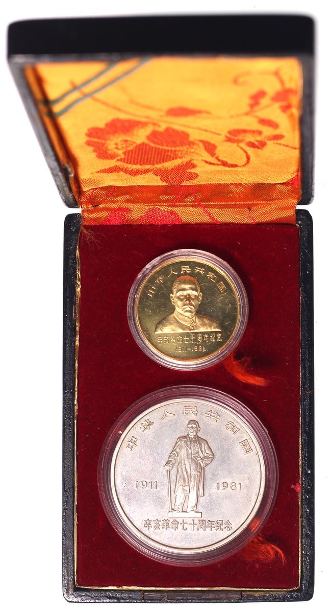 1981年中國辛亥革命70週年紀念銀幣35元及紀念金幣400元,連原盒,幣面有霧化,UNC