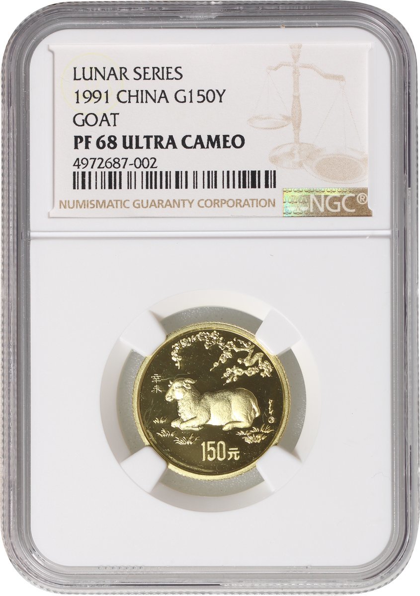 1991年中華人民共和國150元羊年生肖金幣,NGC PF68 Ultra Cameo