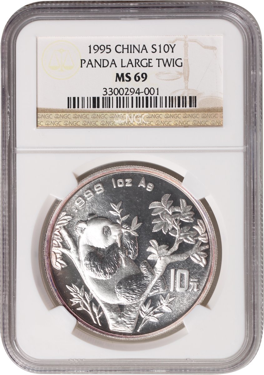People's Republic of China, silver 10 yuan, Panada, 1995, Large Twig, NGC MS69.