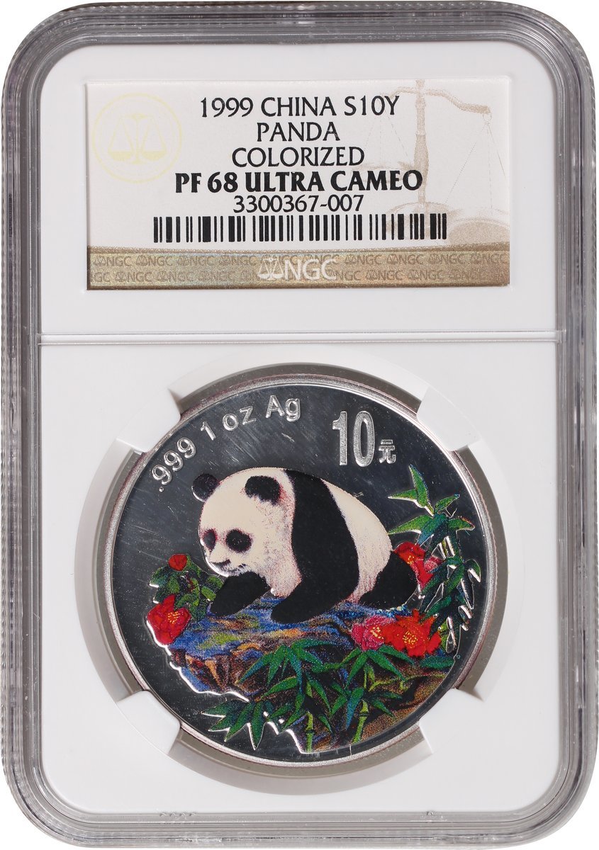 1999年中華人民共和國熊貓10元彩銀幣,連證書,NGC PF 68Ultra Cameo