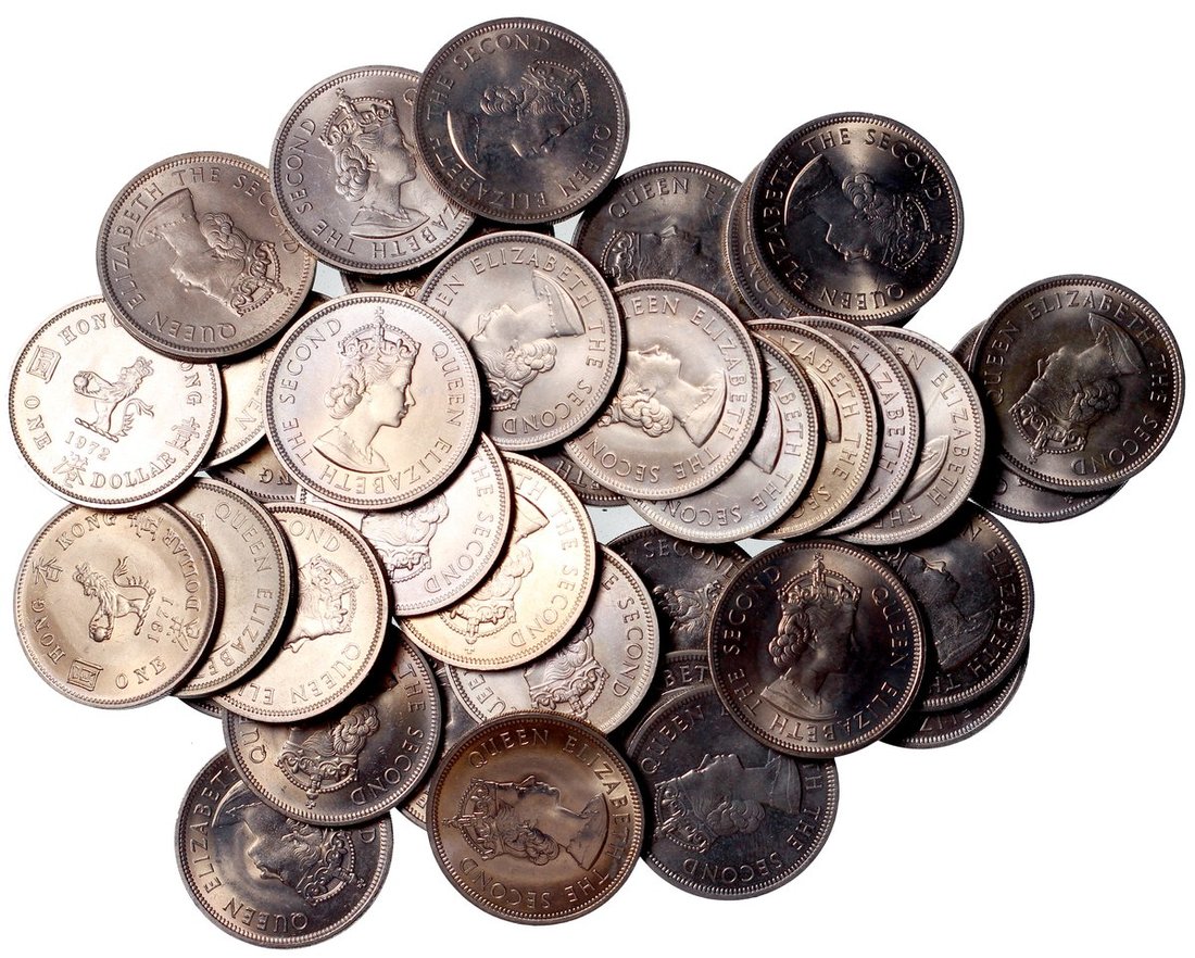 香港鎳幣1元40枚一組,包括1960年6枚,1971年 6枚,1972年10枚,1973年9枚及1974年9枚,共40枚,BU品相