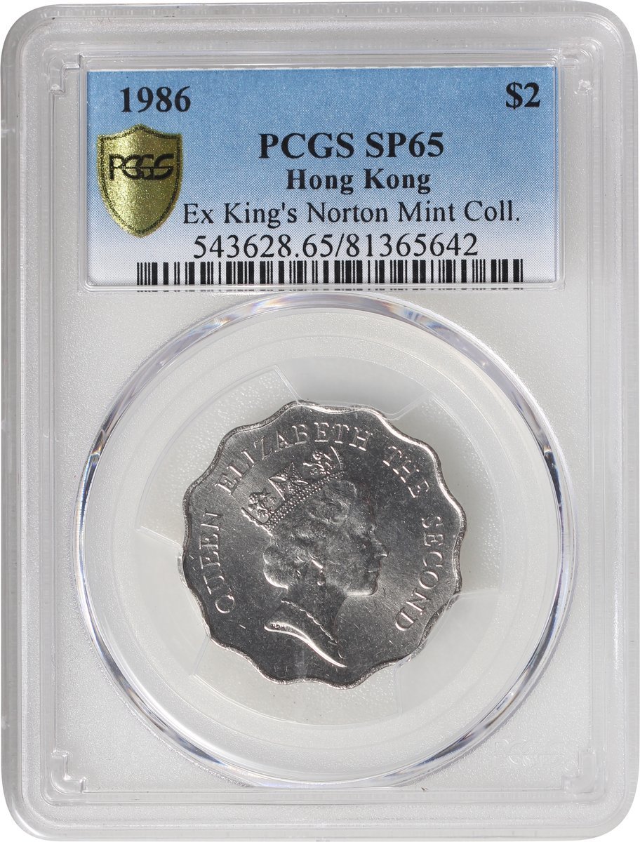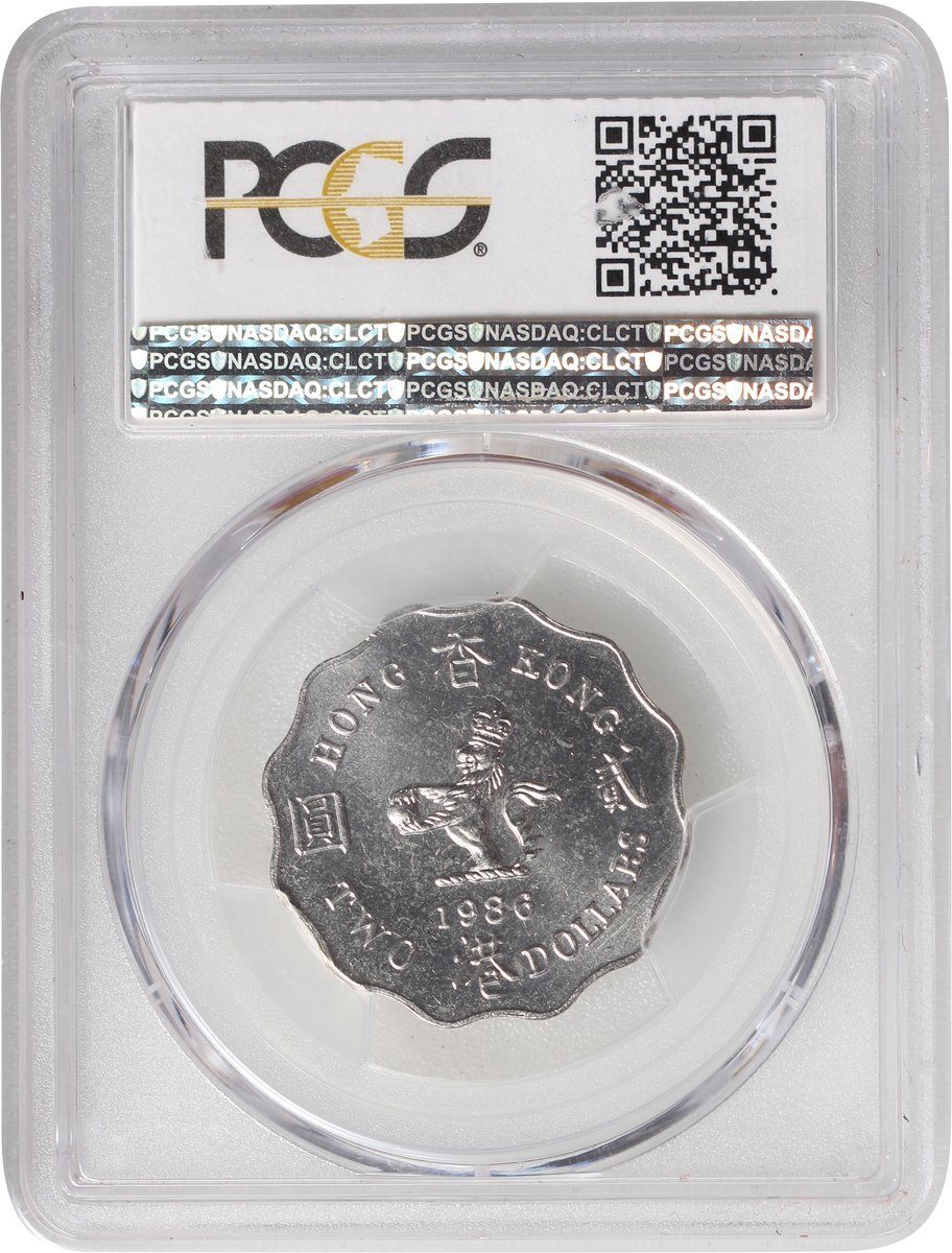 Hong Kong, copper nickel $2, specimen, 1986, PCGS SP65 (Ex King's Norton Mint Collection)