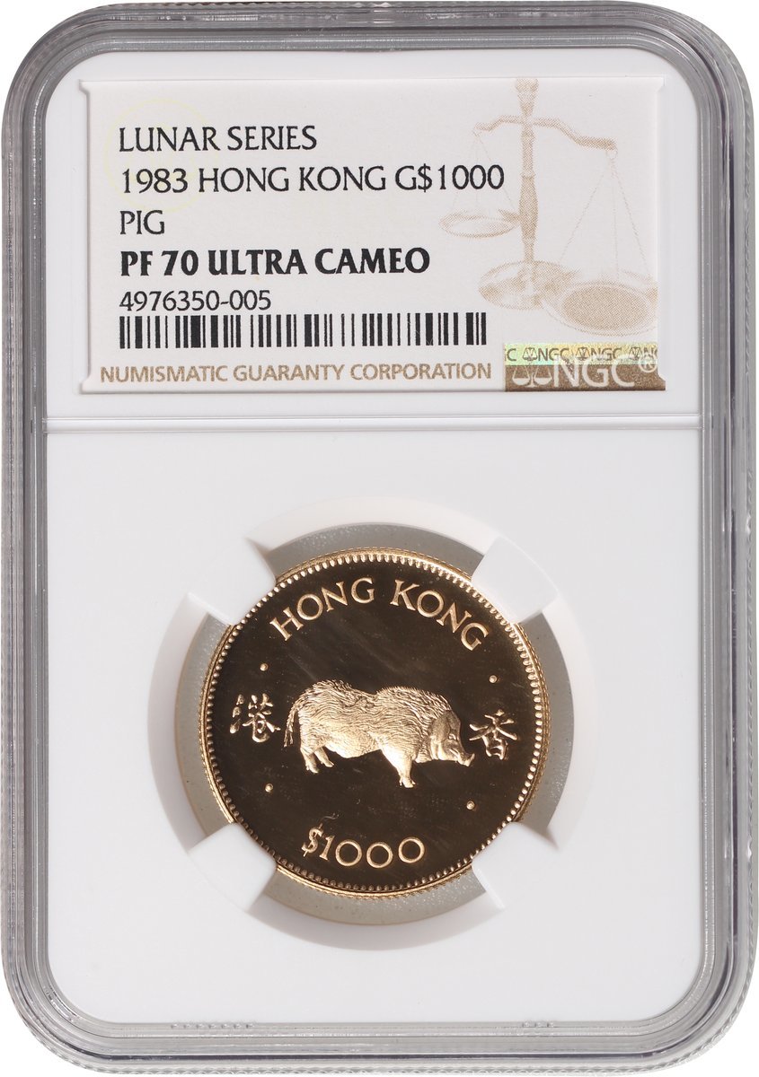 1983年香港豬年生肖金幣1000元,NGC PF70 Ultra Cameo,罕見,連原裝紅盒及證書
