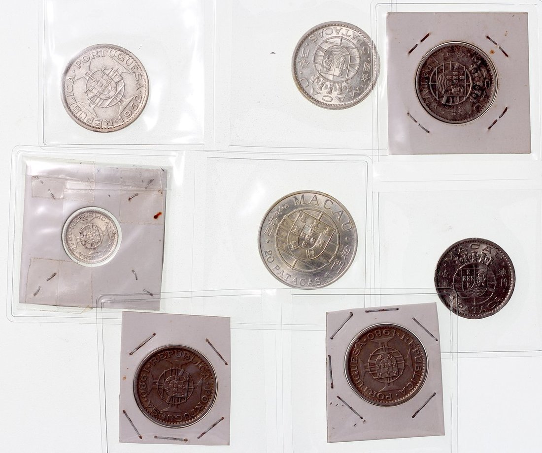 Macau, group of 8, consisting of: 5x copper nickel 1 Pataca, 1952, 1968, 1980 (3),