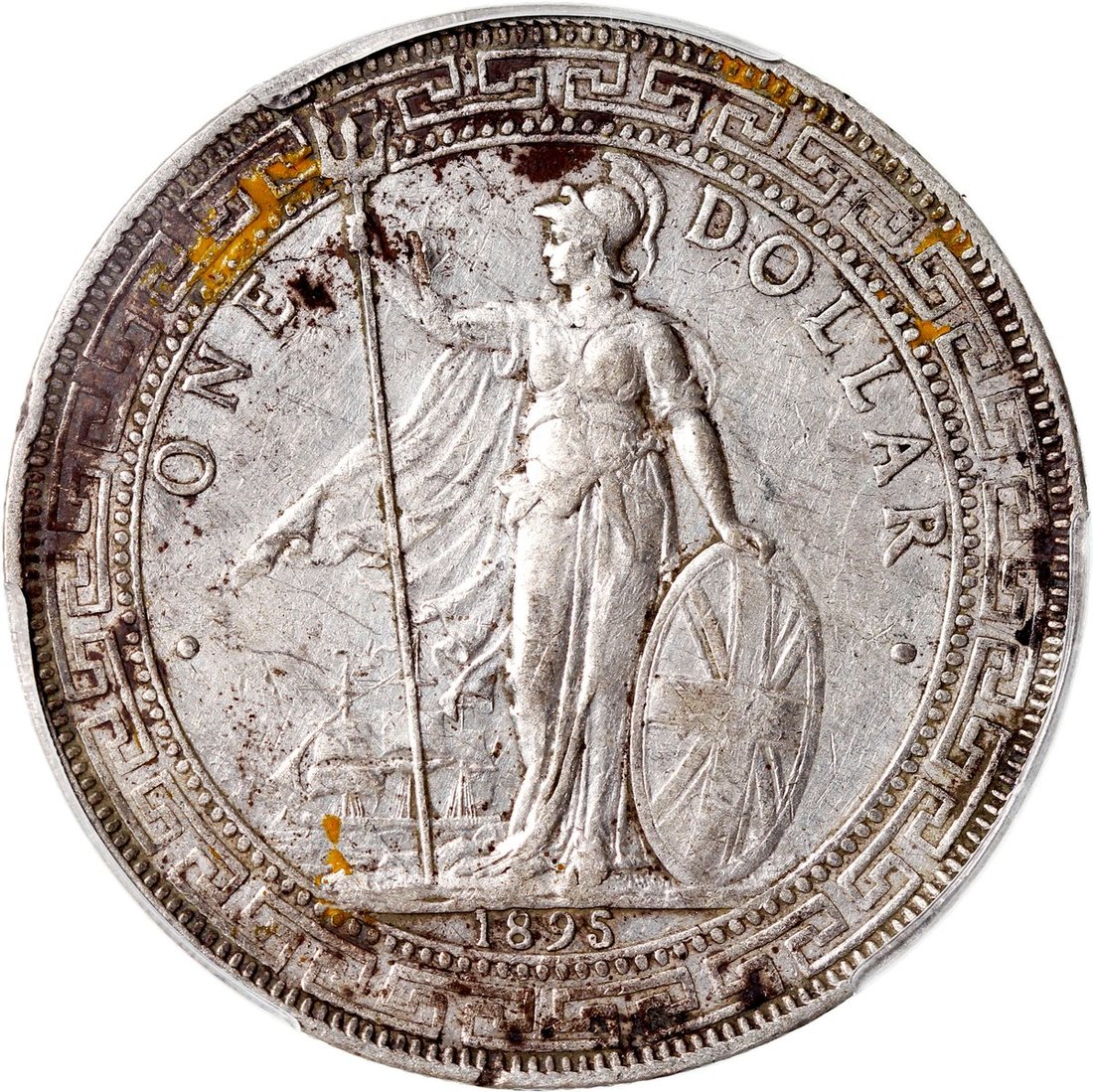Great Britain, silver $1, 1895B, Trade Dollar, 1st year of issue, PCGS AU Detail, cleaned.