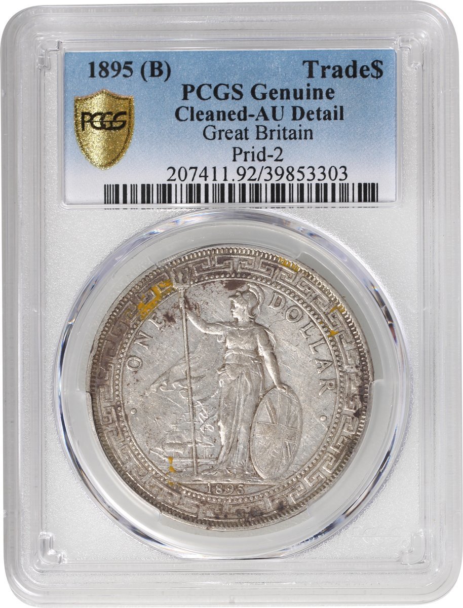 1895B英國貿易銀元,首發年份,PCGS AU Detail,有清洗