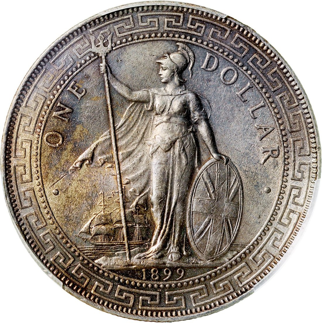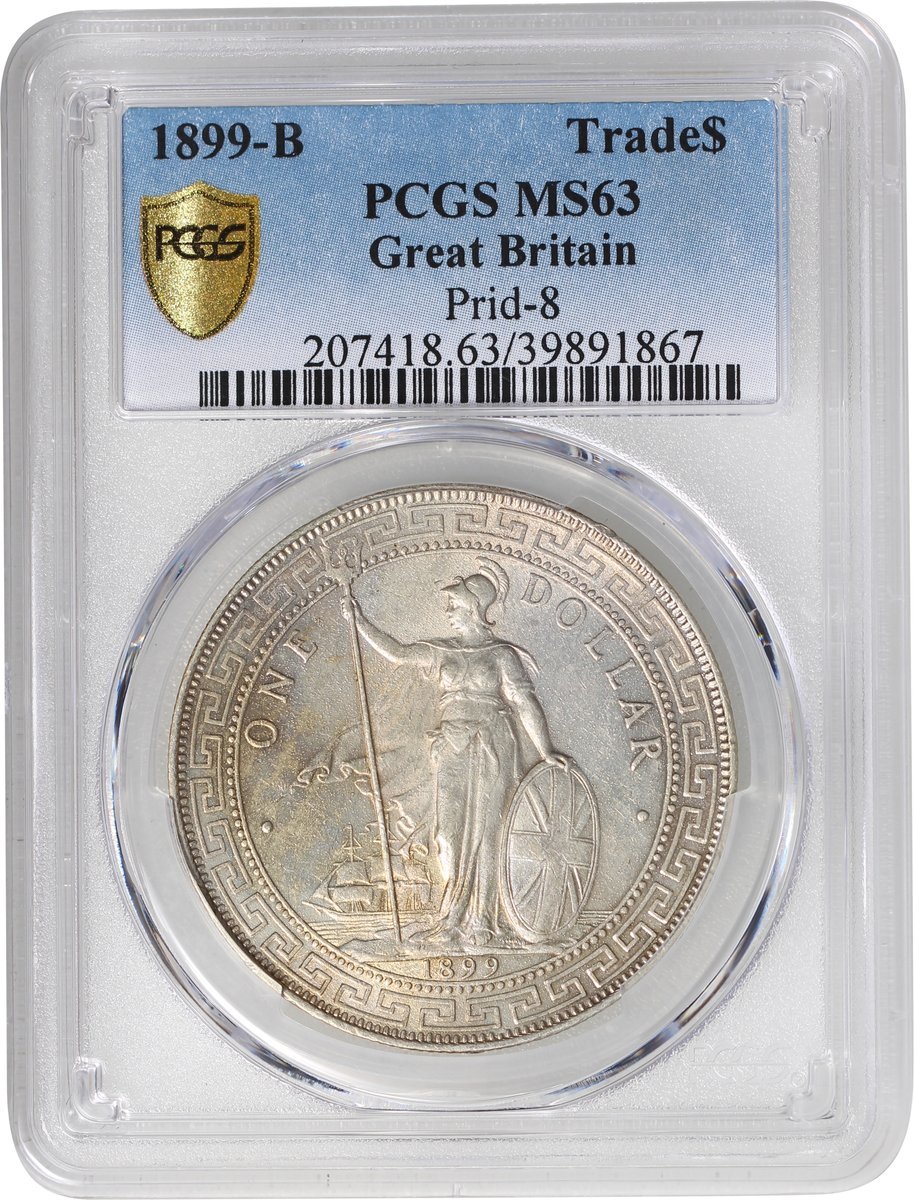 1899-B英國貿易銀元,PCGS MS63,帶淺金黃包漿