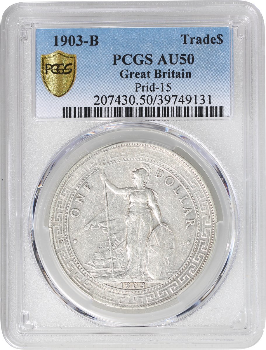 Great Britain, silver trade dollar, 1903-B, (Prid 15), PCGS AU50