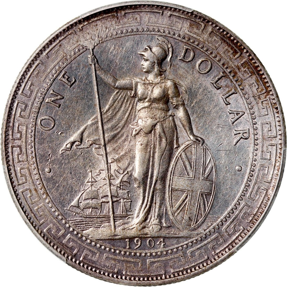 1904/3-B英國貿易銀元,PCGS AU Detail (有清洗),罕見騎字版