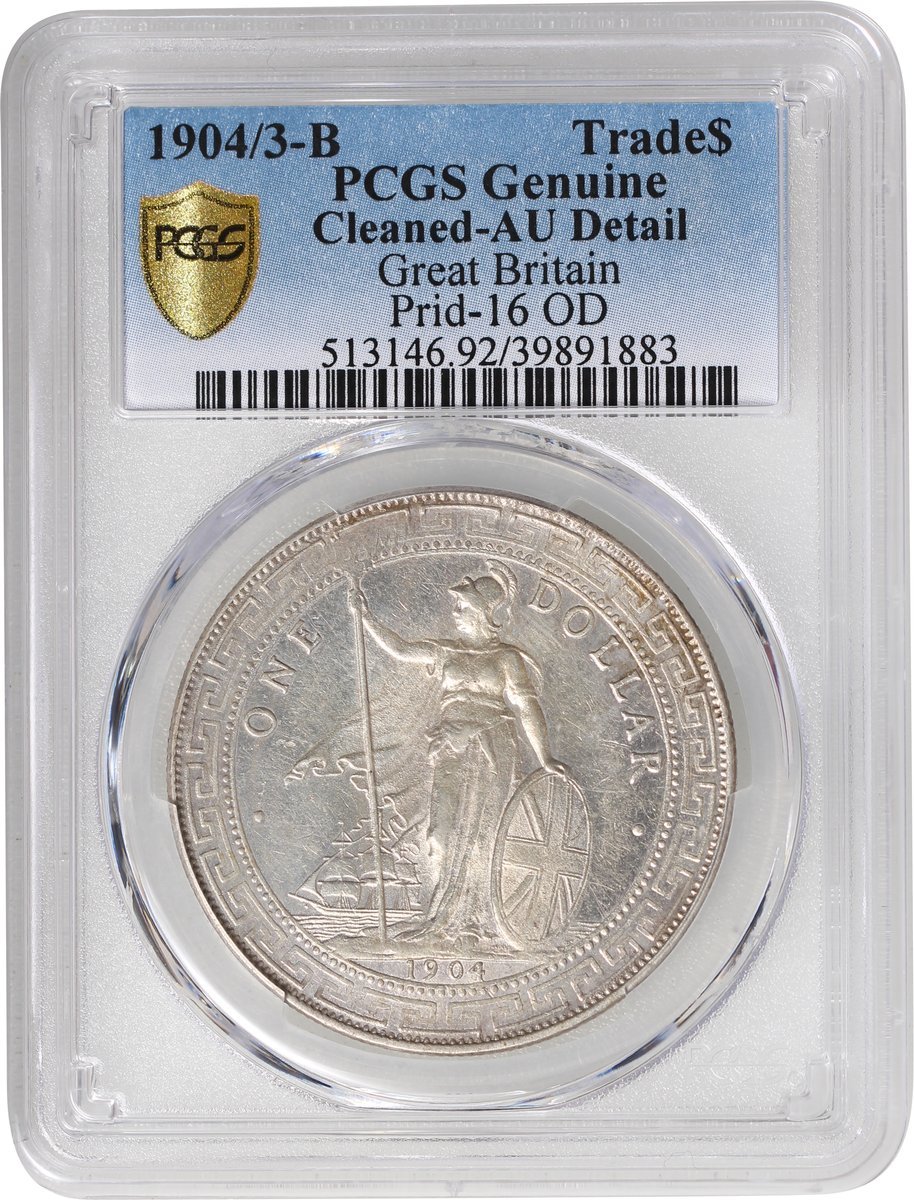 Great Britain, silver $1, 1904/3-B, Trade Dollar, (Prid-16 OD), PCGS AU Detail (Cleaned) and a scarcer overdate