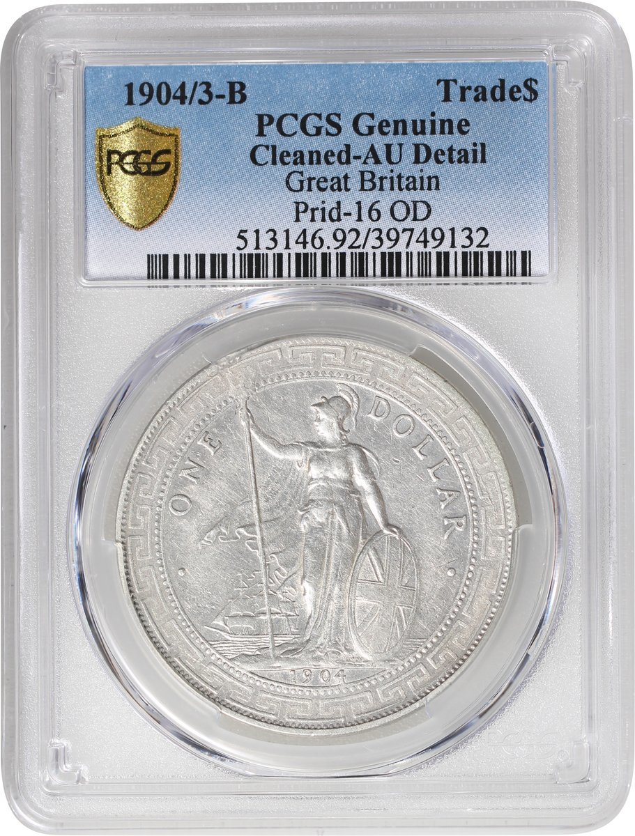 1904/3-B英國貿易銀元,PCGS Genuine AU Detail有清洗,罕見騎字版