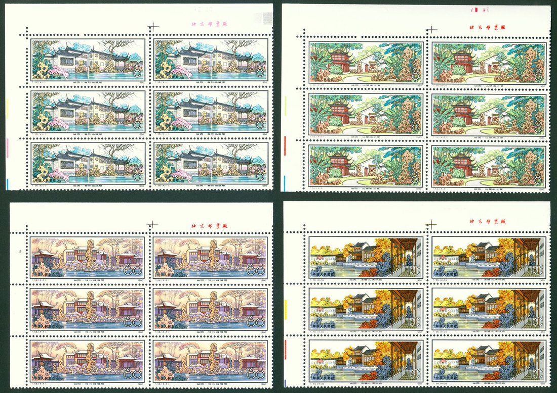 1980 Sochow Garden: Liu Yuan (T56) set of six in blocks of 4 with left and top imprint margin, fine unmounted mint. Yang T274-277
