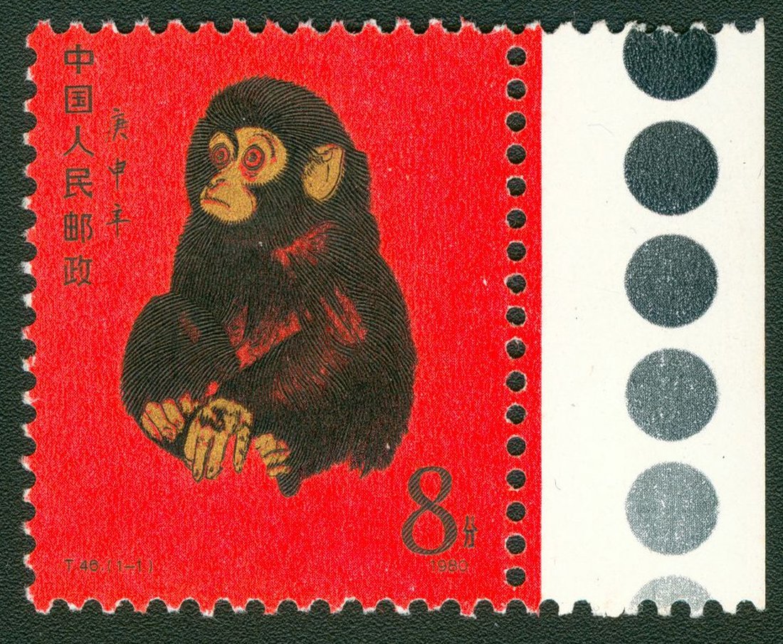 1980Year of Monkey (T46) with color code in right margin, fresh, unmounted mint.