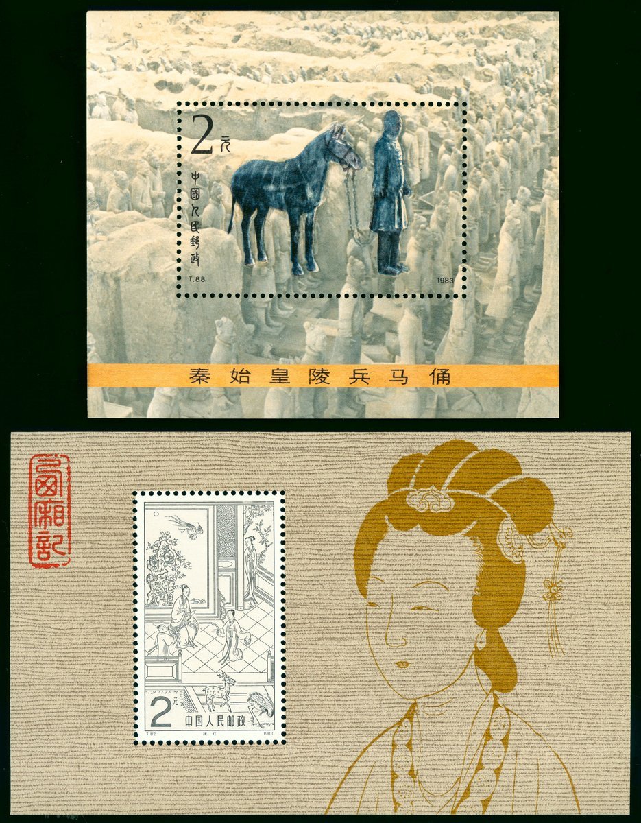 1983 The West Chamber (T82) and 1983 Qin Terra-cotta Warriors (T88) miniature sheets, fine to very fine unmounted mint. Yang T82M, T88M.