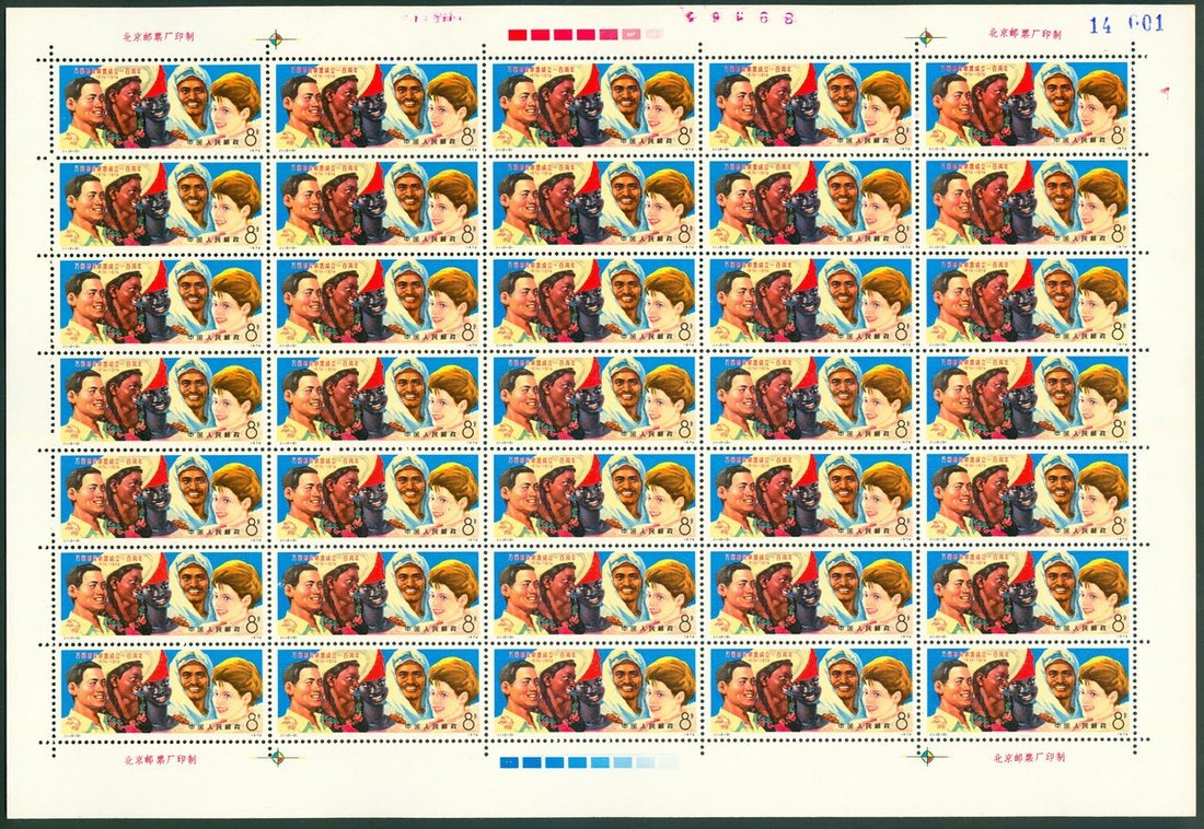 1974年J1萬國郵聯新票35枚全張1套,邊紙完整,帶藍紅色標,票面顏色鮮豔,中部齒間有折,原膠,背膠微黃,整體上中品