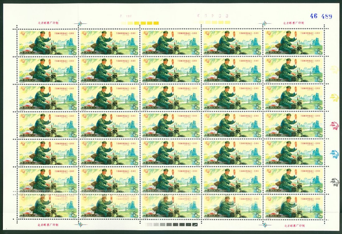 1974年J1萬國郵聯新票35枚全張1套,邊紙完整,帶黃黑色標,票面顏色鮮豔,中部齒間有折,原膠,背膠微黃,整體上中品