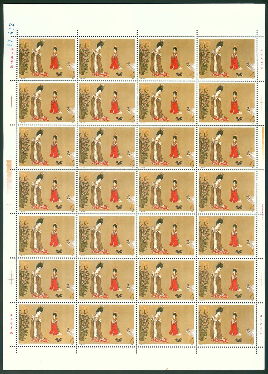 1984年T89仕女新票28枚全張1套,邊紙完整,票面顏色鮮豔,金粉閃亮,挺版,原膠,上中品