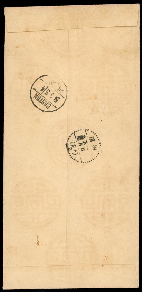 1954 (1 May) a registered first day cover to Hong Kong bearing Economic Construction (S8) set of eight tied by Canton Labour Day commemorate cancellation, showing registered label alongside, on reverse Canton (1.5) and (3.5) c.d.s. A scarce first day cover.