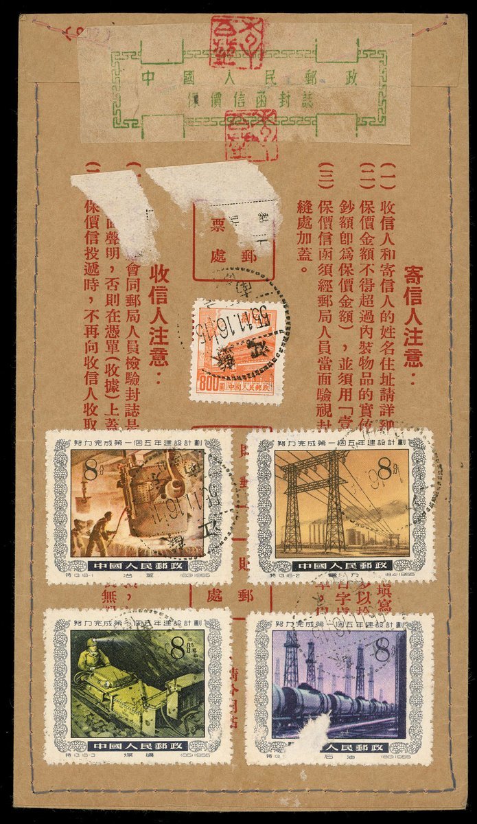 1955 (16 Nov) An insure registered envelope to Paoki bearing $800 and new currency 8f.(4) tied by Nanking c.d.s., on front with Paoki(19.11) arrival c.d.s.,very unusual usage.