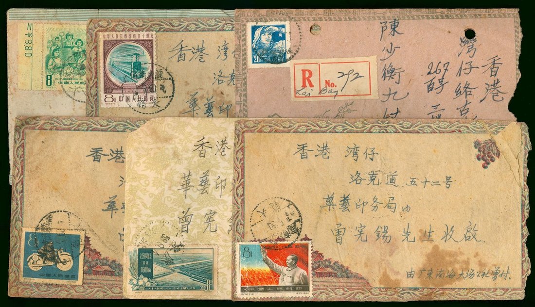 1950-1960s Thirteen envelopes to Hong Kong, are sent from different parts of Guangdong, and the destinations include Dafan, Beicun, Dongkou and Shwtow. Most of them are affixed with C and S series 8 f. franking.
