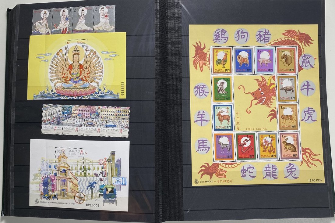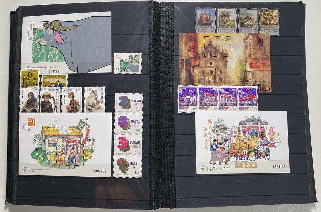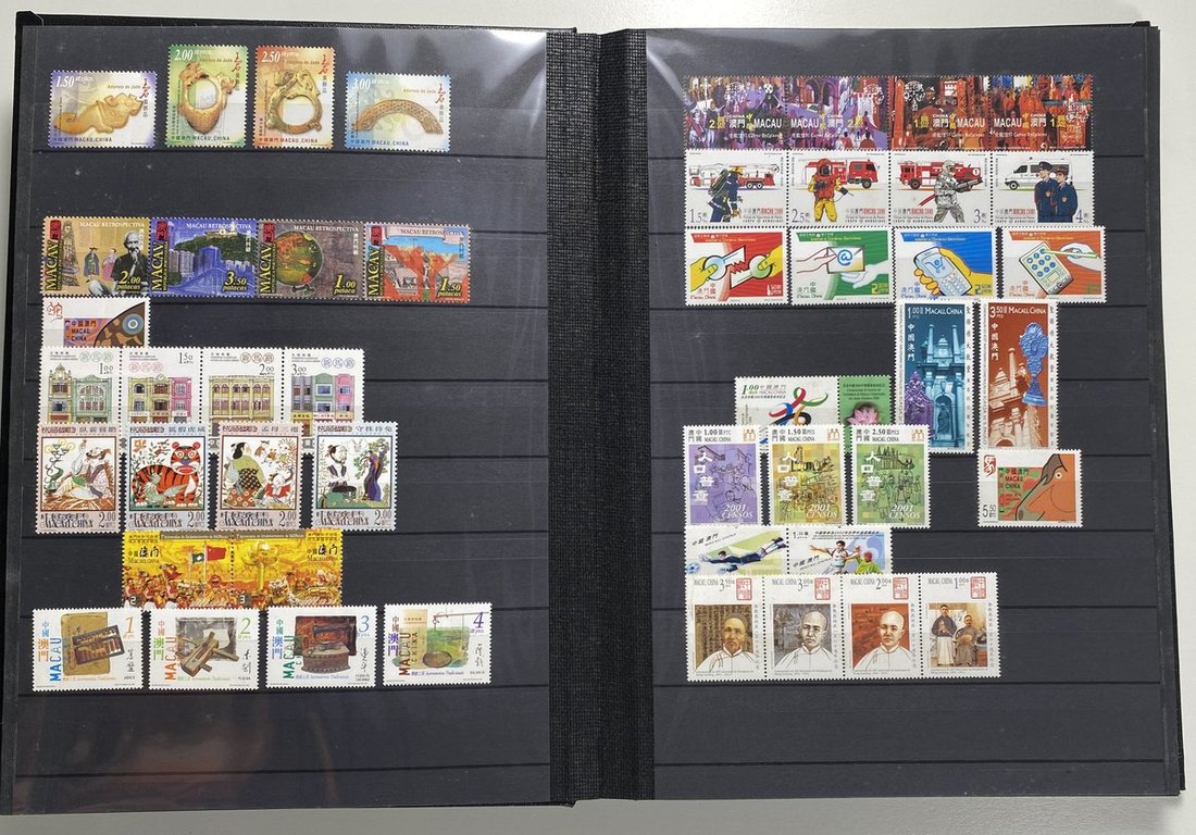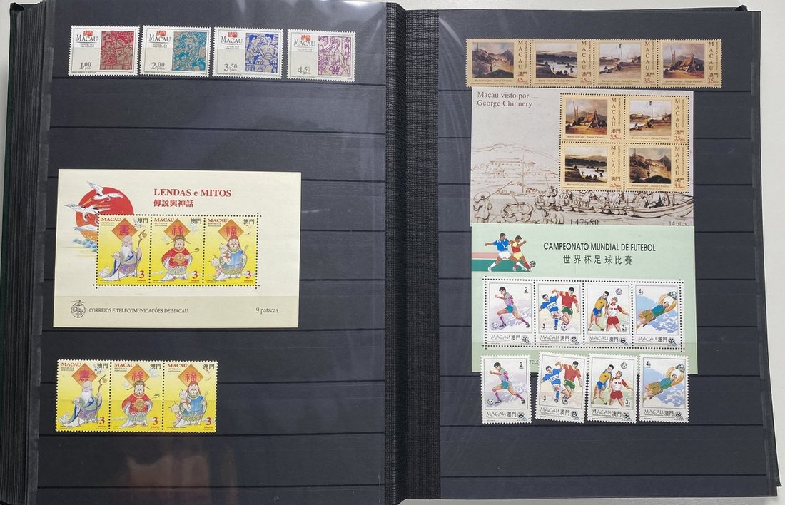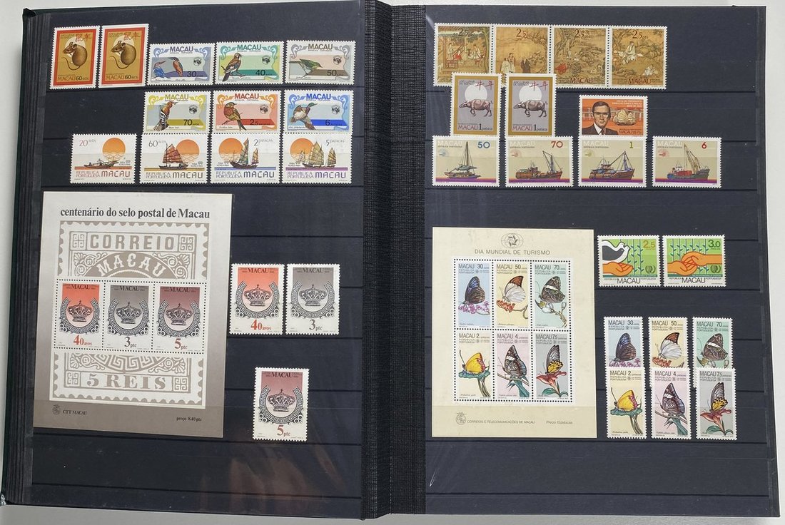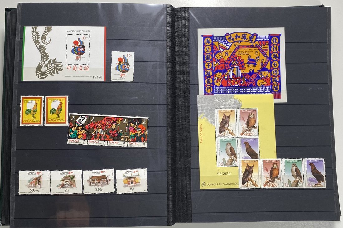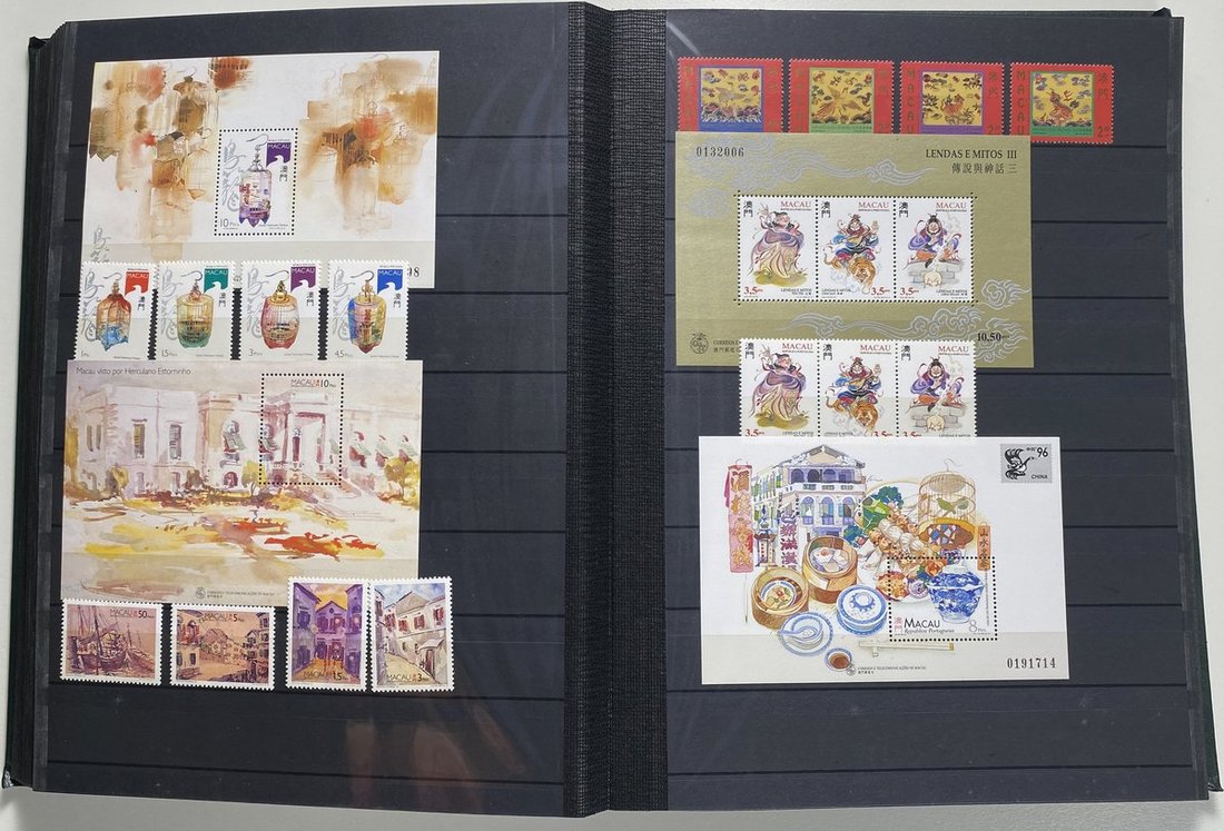 A collection of Macau stamps from 1884 to 2001 in four albums, including Portuguese Colonies 1939-40 New York Expo. overprints in set of eight, also some stamp booklets, airmail stamps, souvenir sheets, some dupilcate material, mainly unused, mixed condition. A marvelous basis for further expansion into a completed Macau collection. Please review.