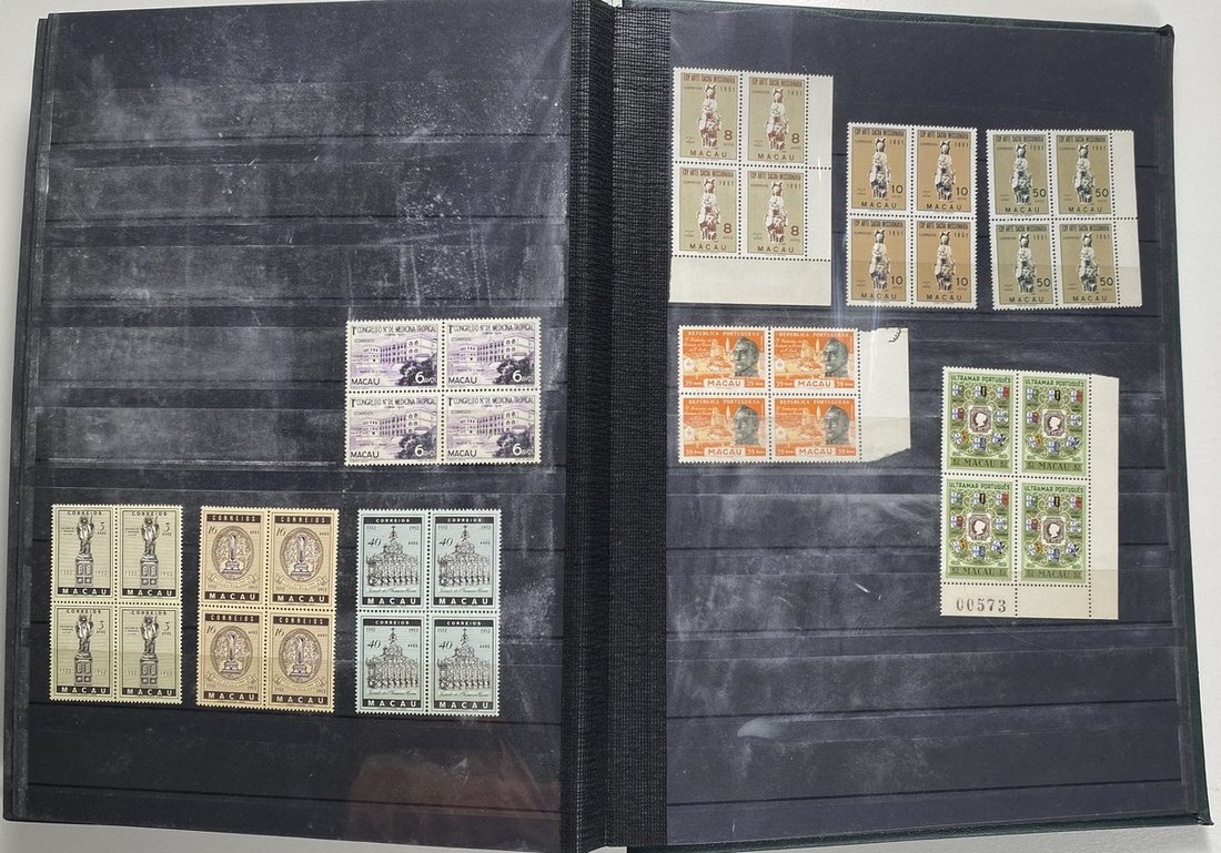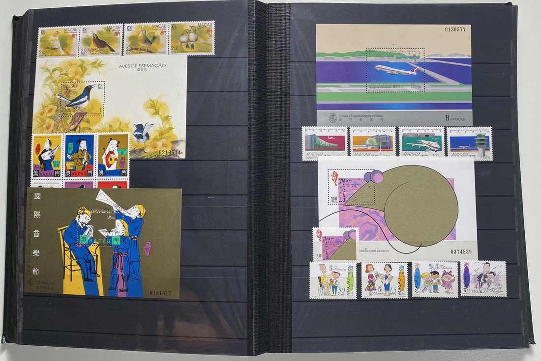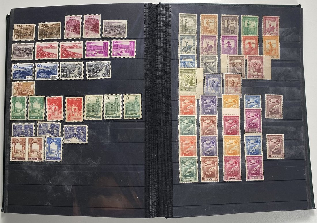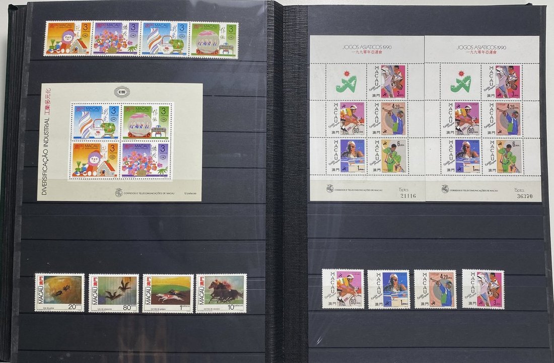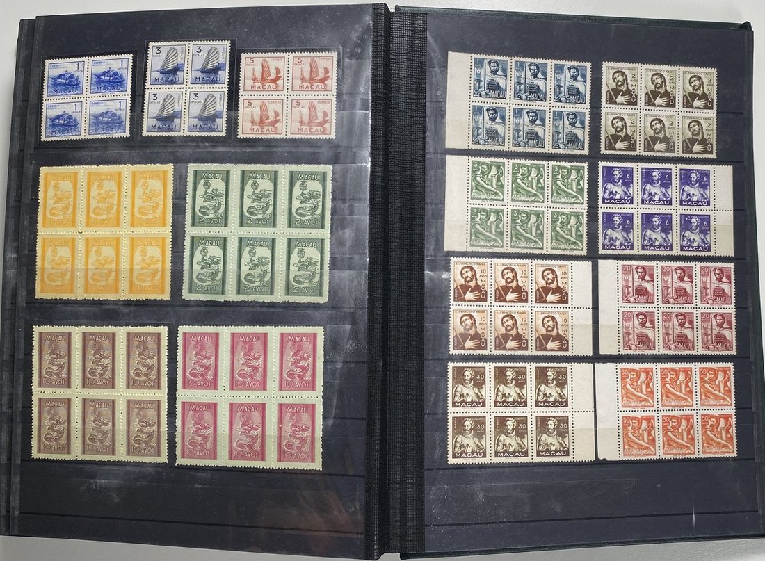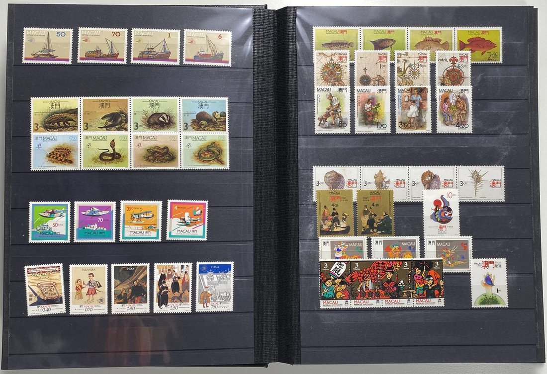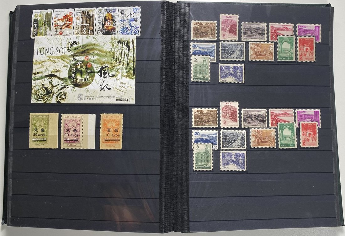 A collection of Macau stamps from 1884 to 2001 in four albums, including Portuguese Colonies 1939-40 New York Expo. overprints in set of eight, also some stamp booklets, airmail stamps, souvenir sheets, some dupilcate material, mainly unused, mixed condition. A marvelous basis for further expansion into a completed Macau collection. Please review.