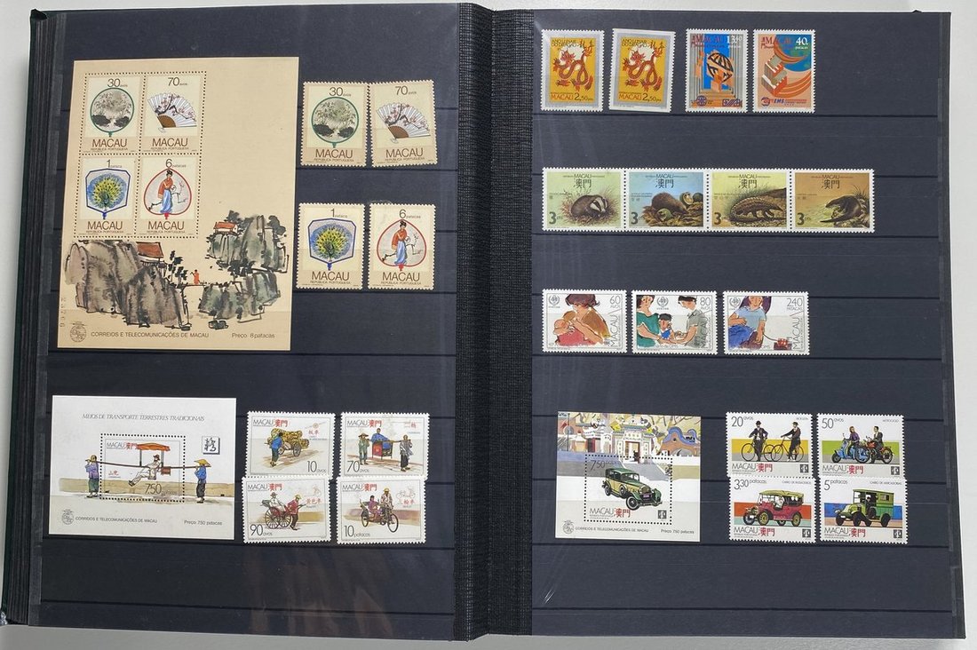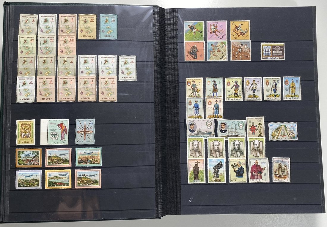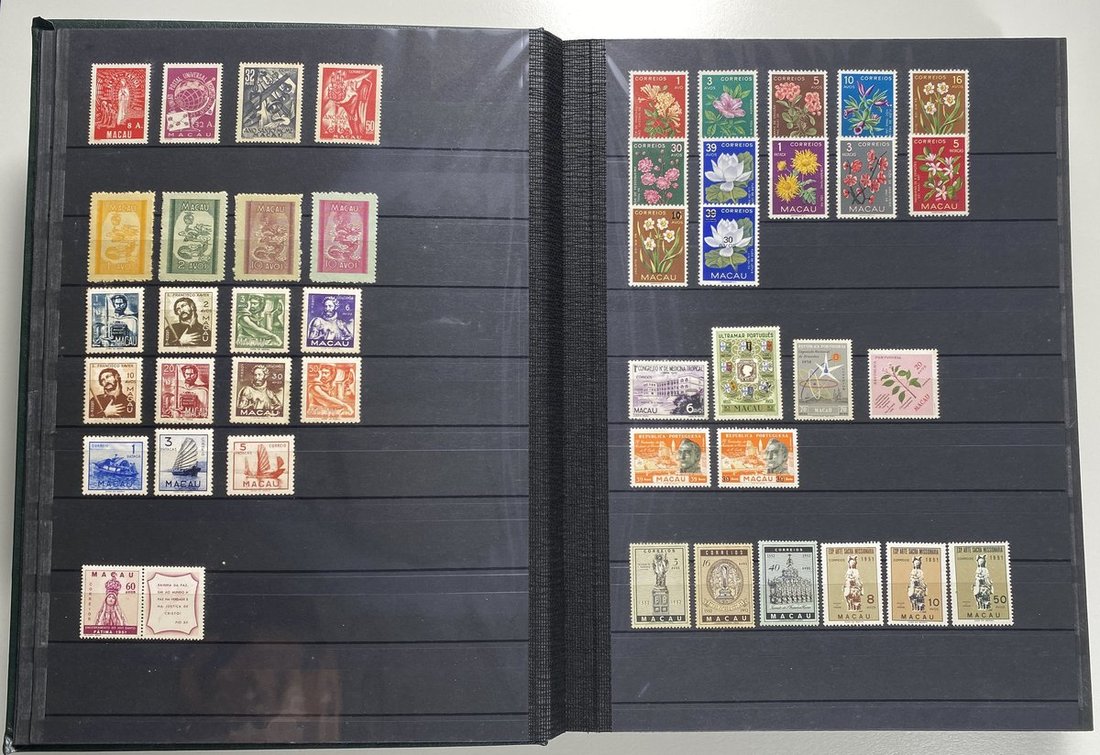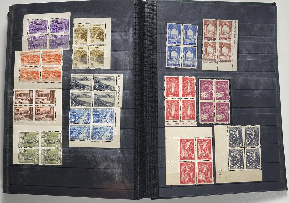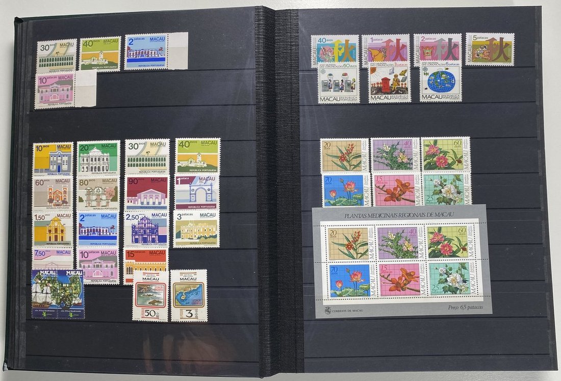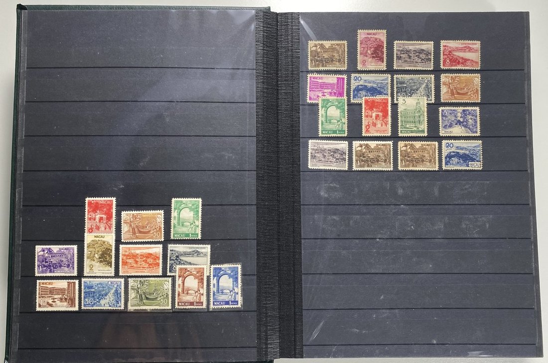 A collection of Macau stamps from 1884 to 2001 in four albums, including Portuguese Colonies 1939-40 New York Expo. overprints in set of eight, also some stamp booklets, airmail stamps, souvenir sheets, some dupilcate material, mainly unused, mixed condition. A marvelous basis for further expansion into a completed Macau collection. Please review.