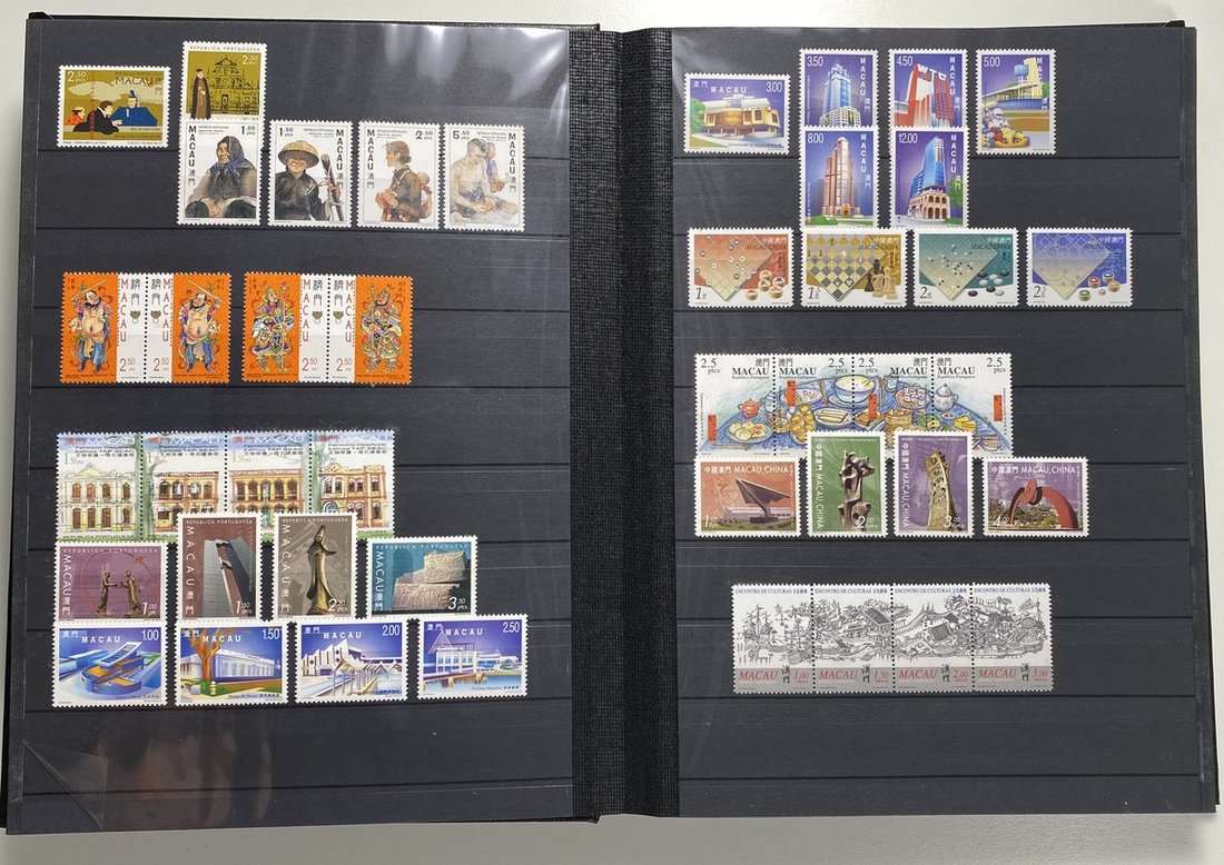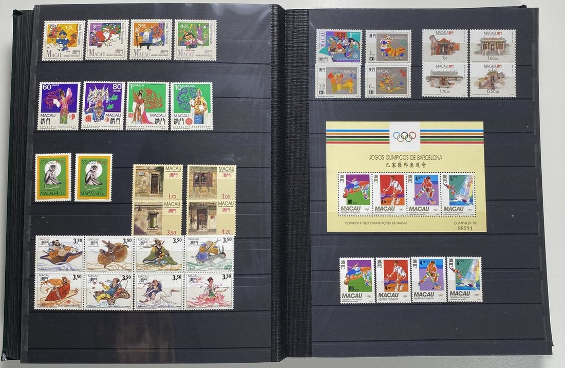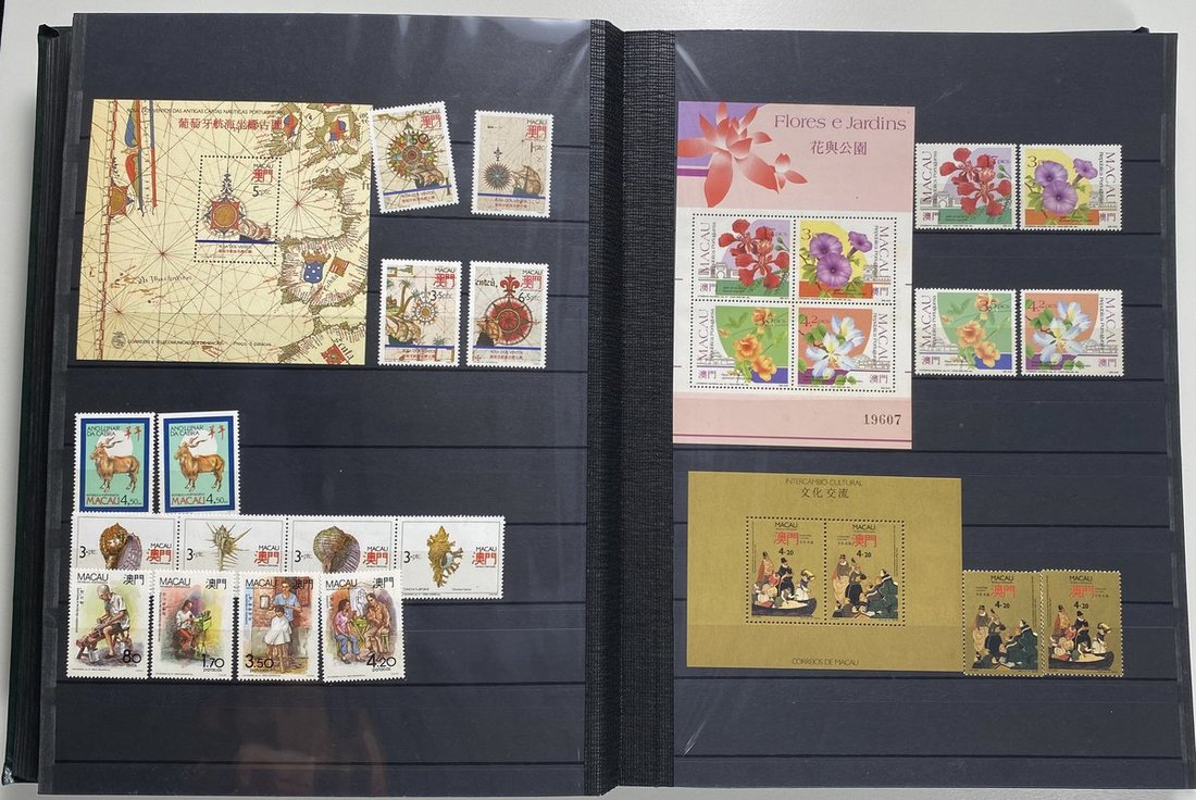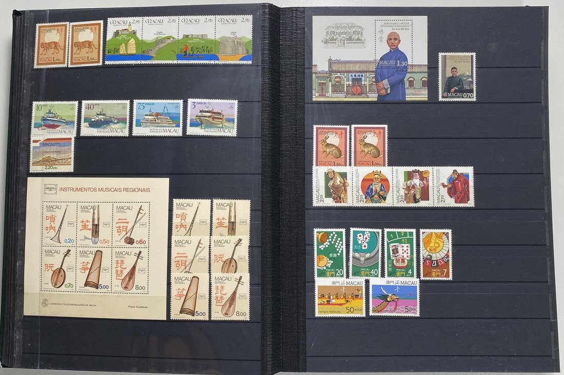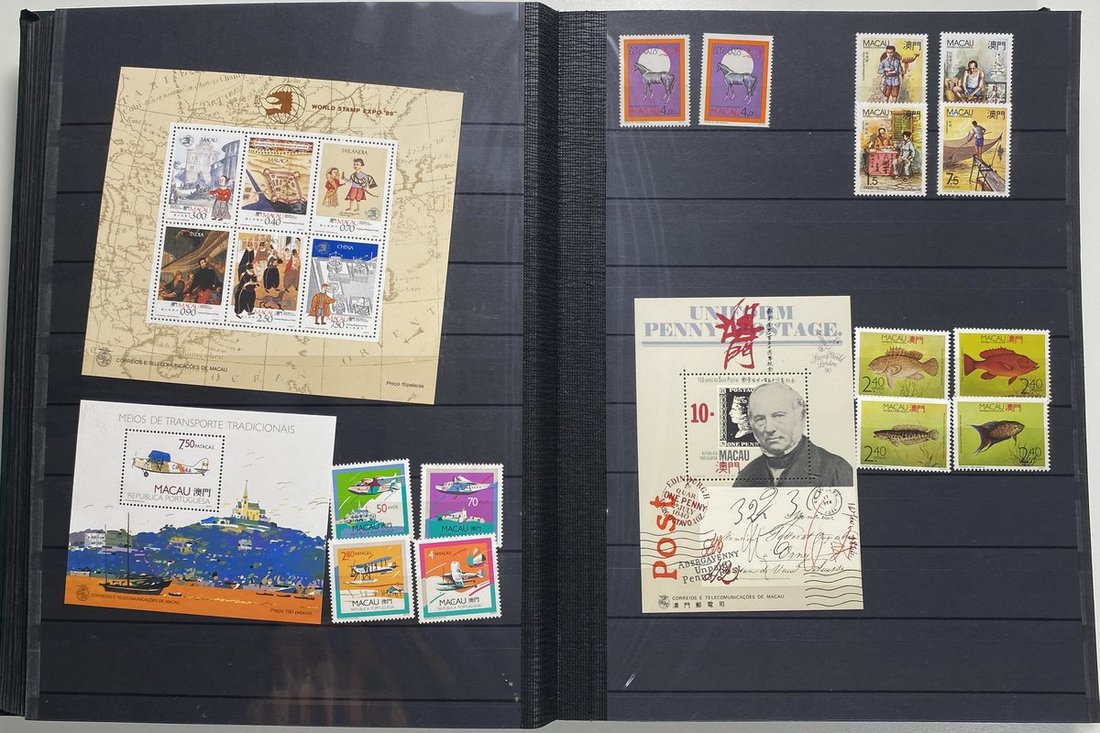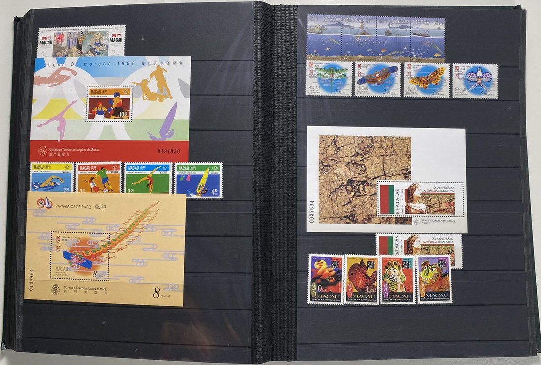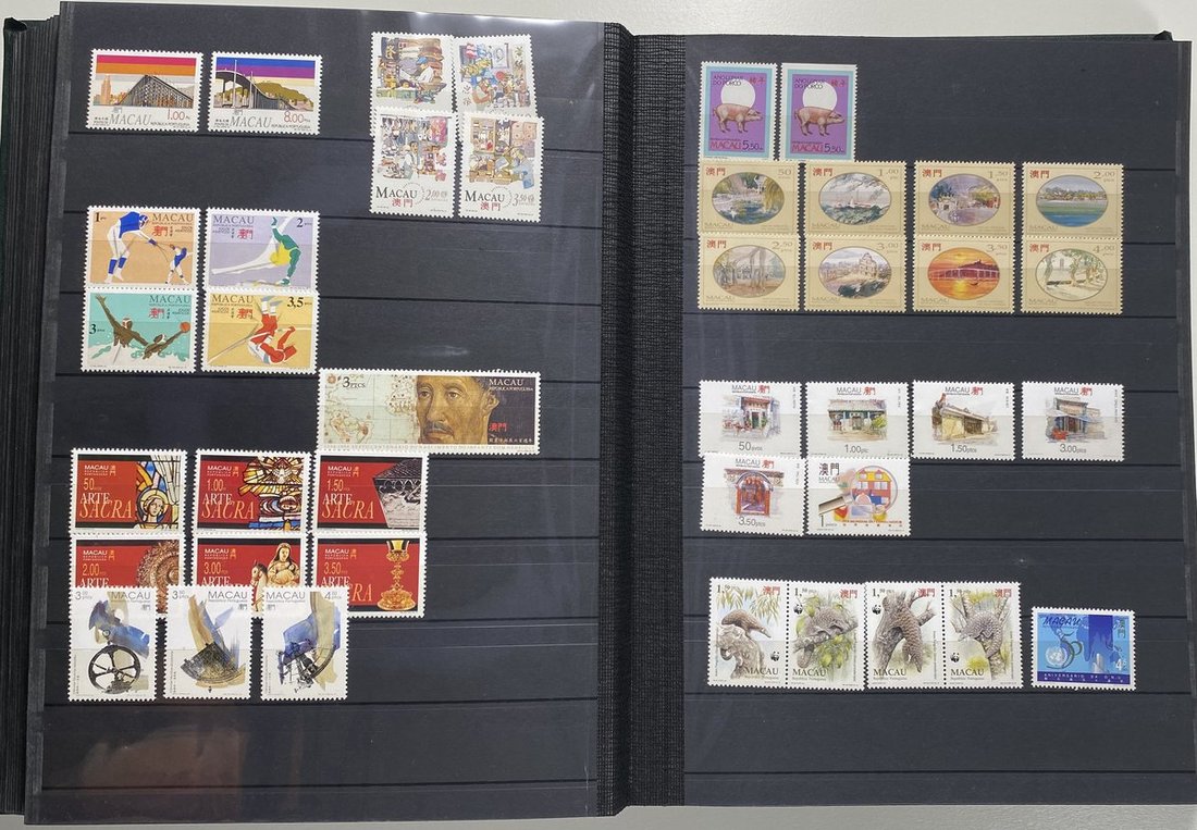 A collection of Macau stamps from 1884 to 2001 in four albums, including Portuguese Colonies 1939-40 New York Expo. overprints in set of eight, also some stamp booklets, airmail stamps, souvenir sheets, some dupilcate material, mainly unused, mixed condition. A marvelous basis for further expansion into a completed Macau collection. Please review.