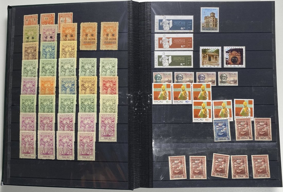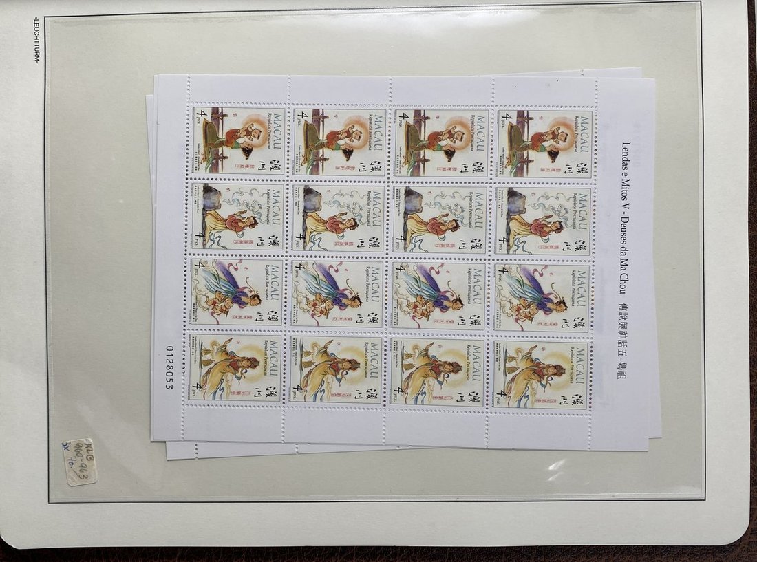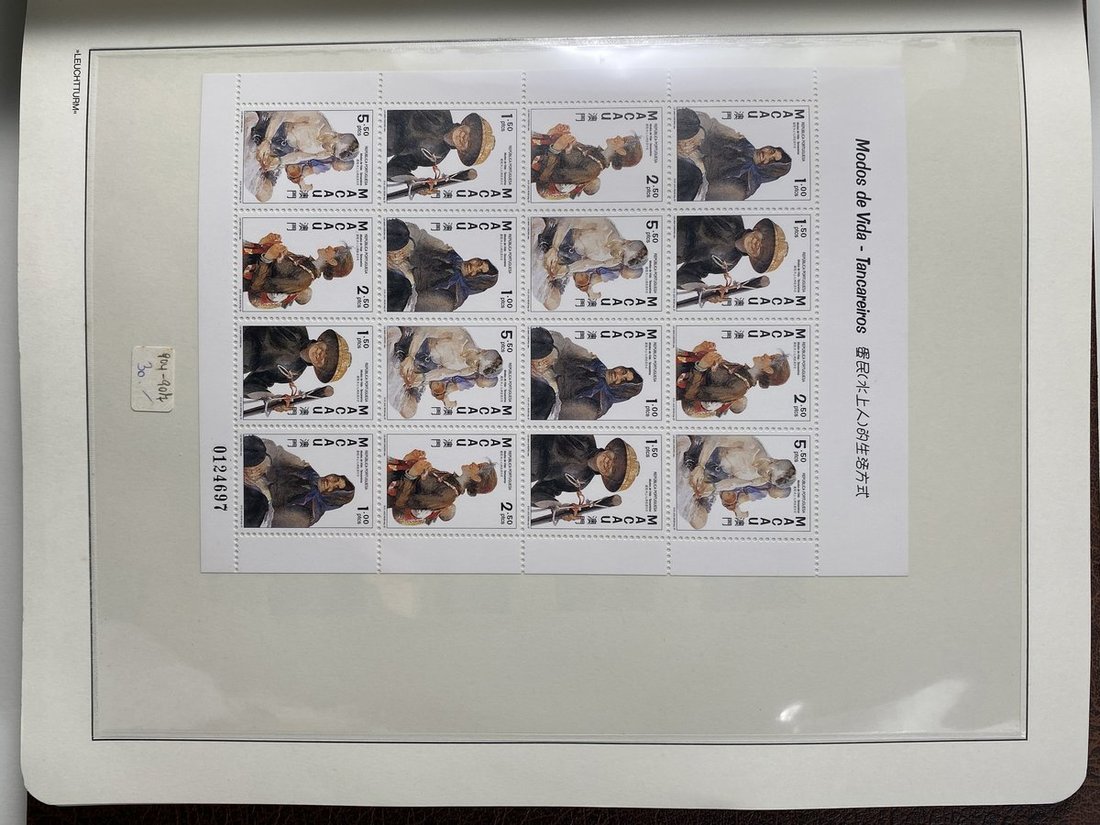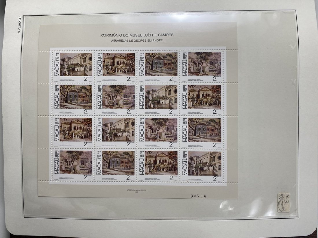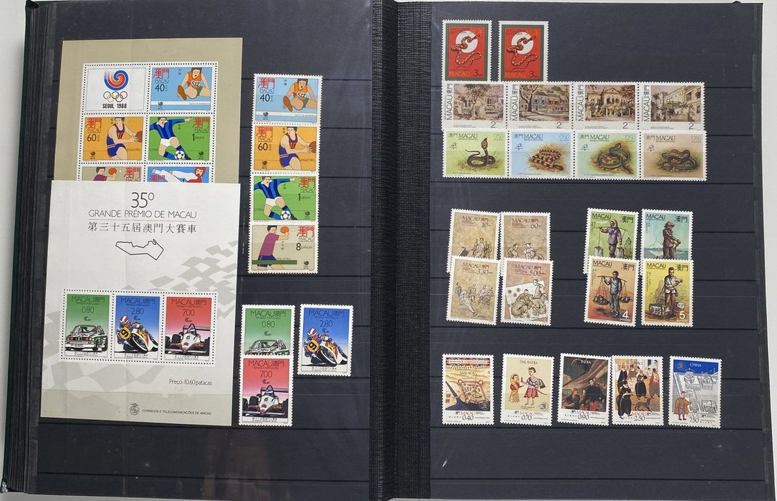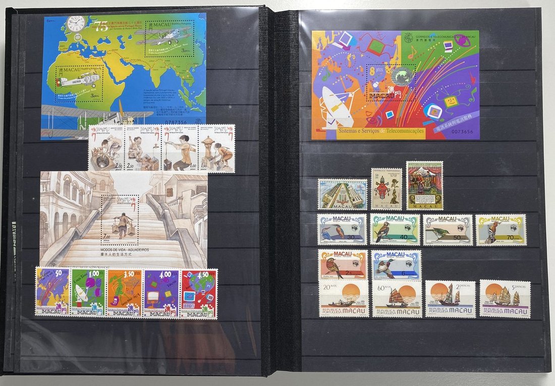 A collection of Macau stamps from 1884 to 2001 in four albums, including Portuguese Colonies 1939-40 New York Expo. overprints in set of eight, also some stamp booklets, airmail stamps, souvenir sheets, some dupilcate material, mainly unused, mixed condition. A marvelous basis for further expansion into a completed Macau collection. Please review.