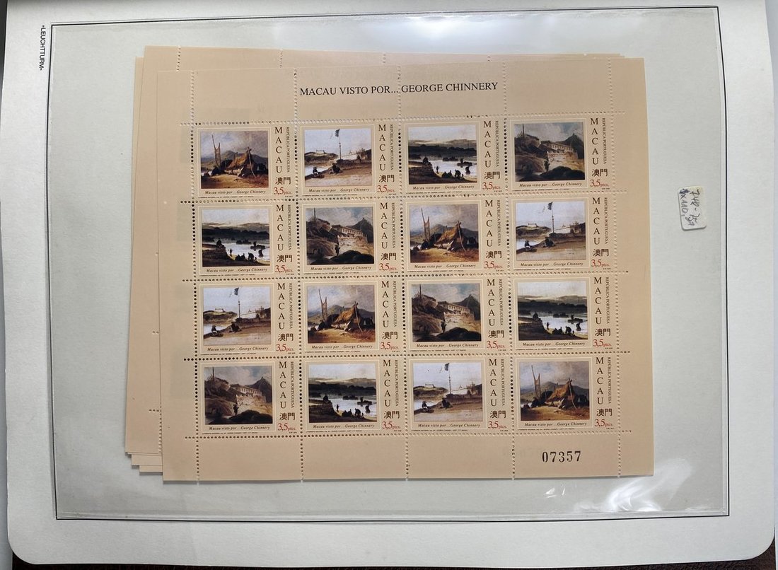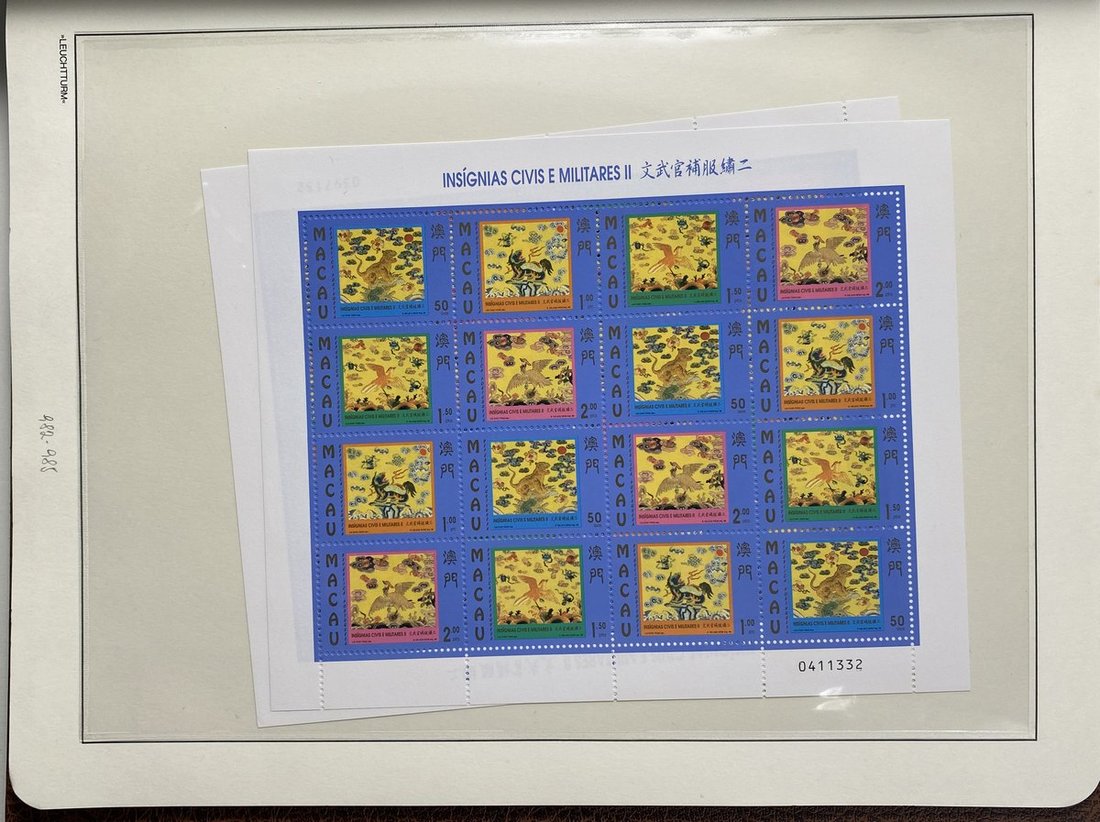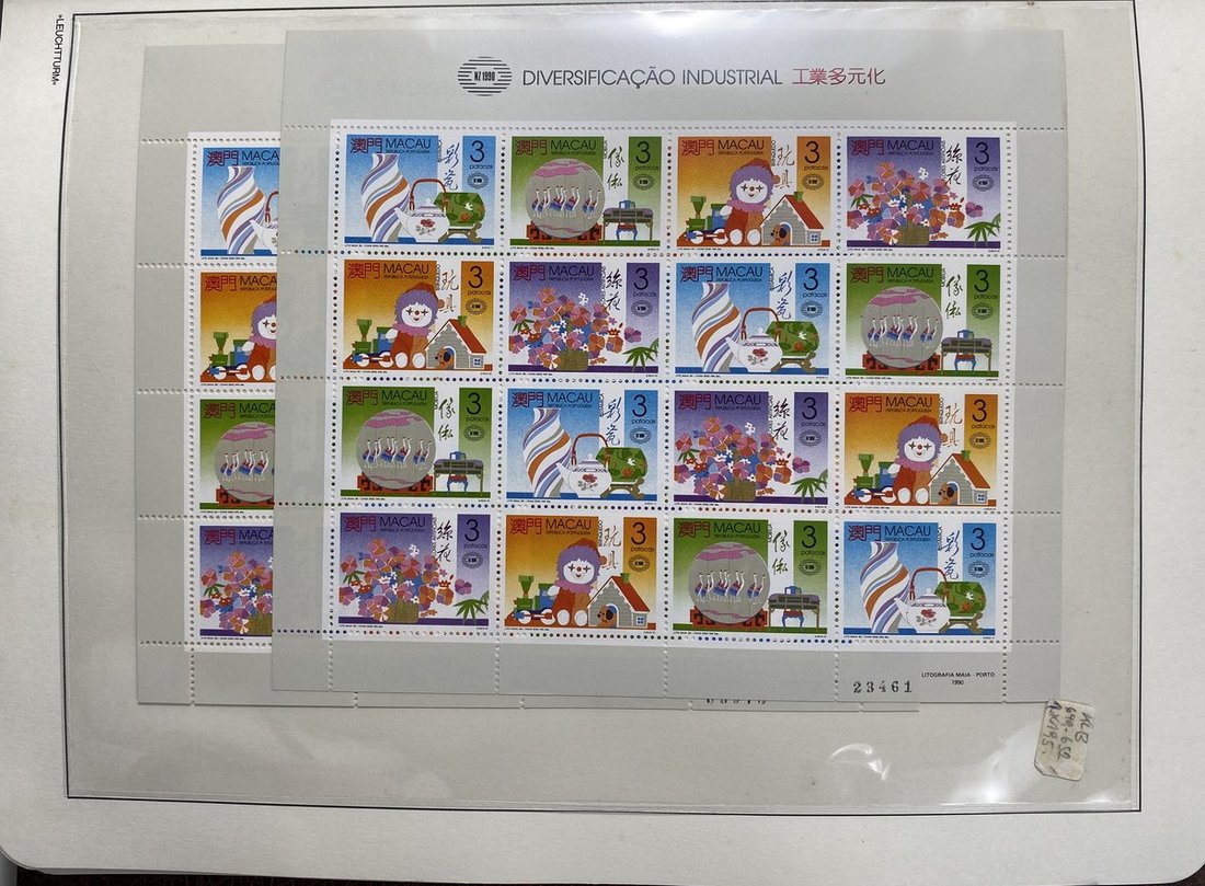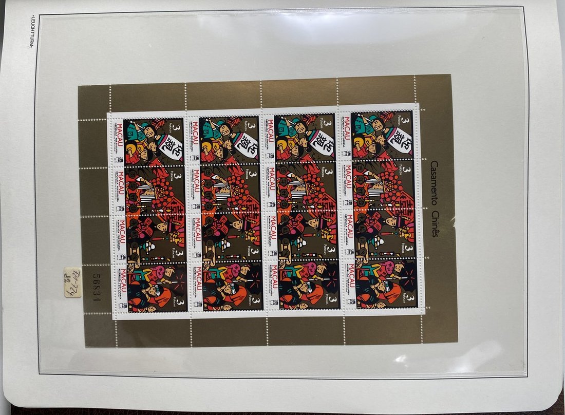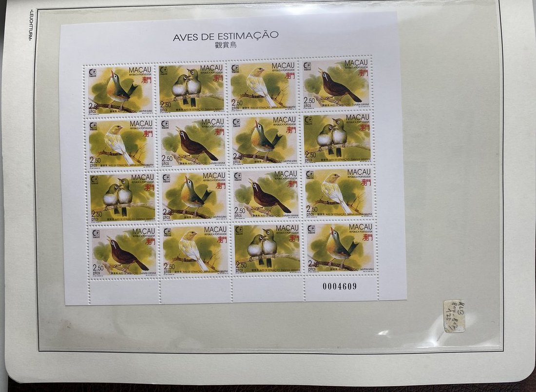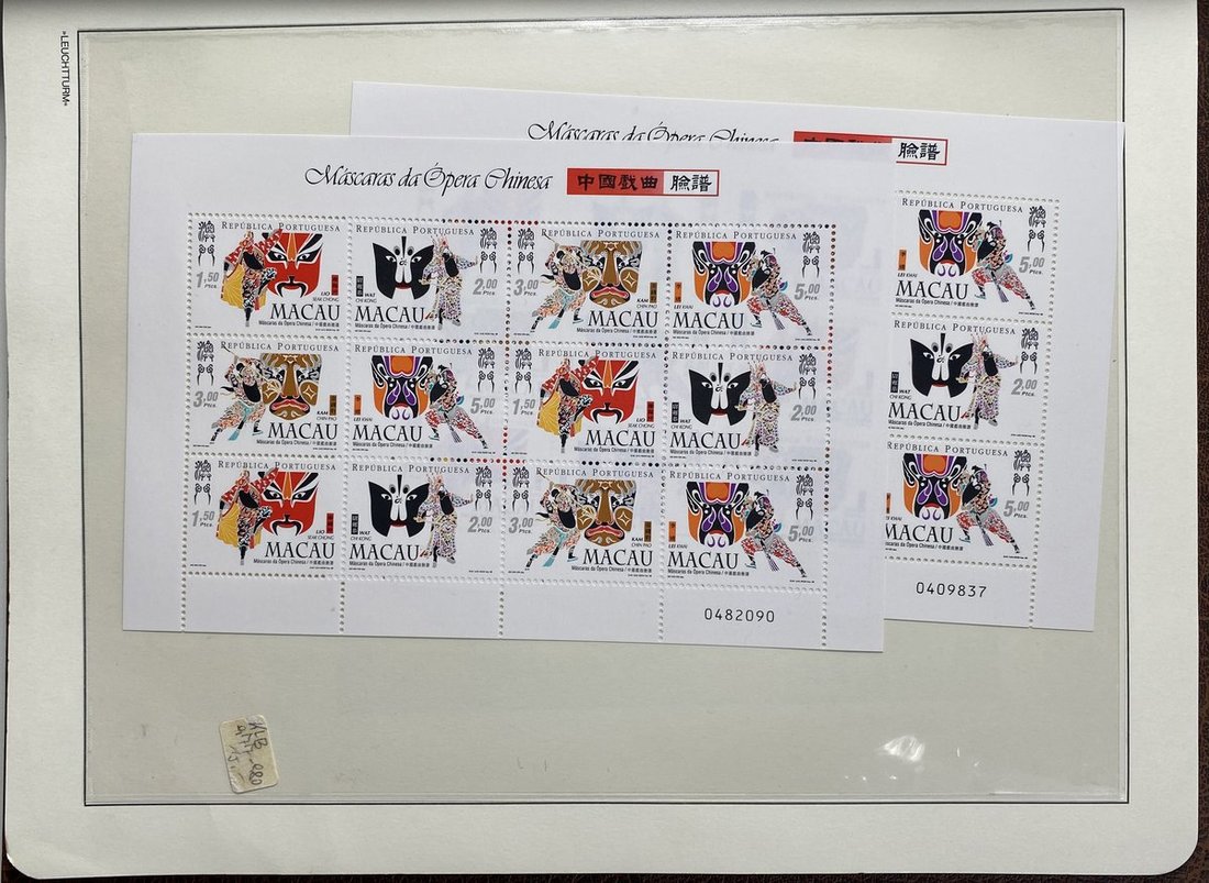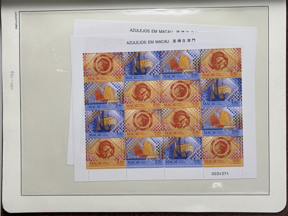 A collection of Macau stamps from 1884 to 2001 in four albums, including Portuguese Colonies 1939-40 New York Expo. overprints in set of eight, also some stamp booklets, airmail stamps, souvenir sheets, some dupilcate material, mainly unused, mixed condition. A marvelous basis for further expansion into a completed Macau collection. Please review.