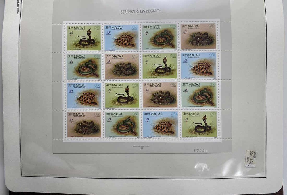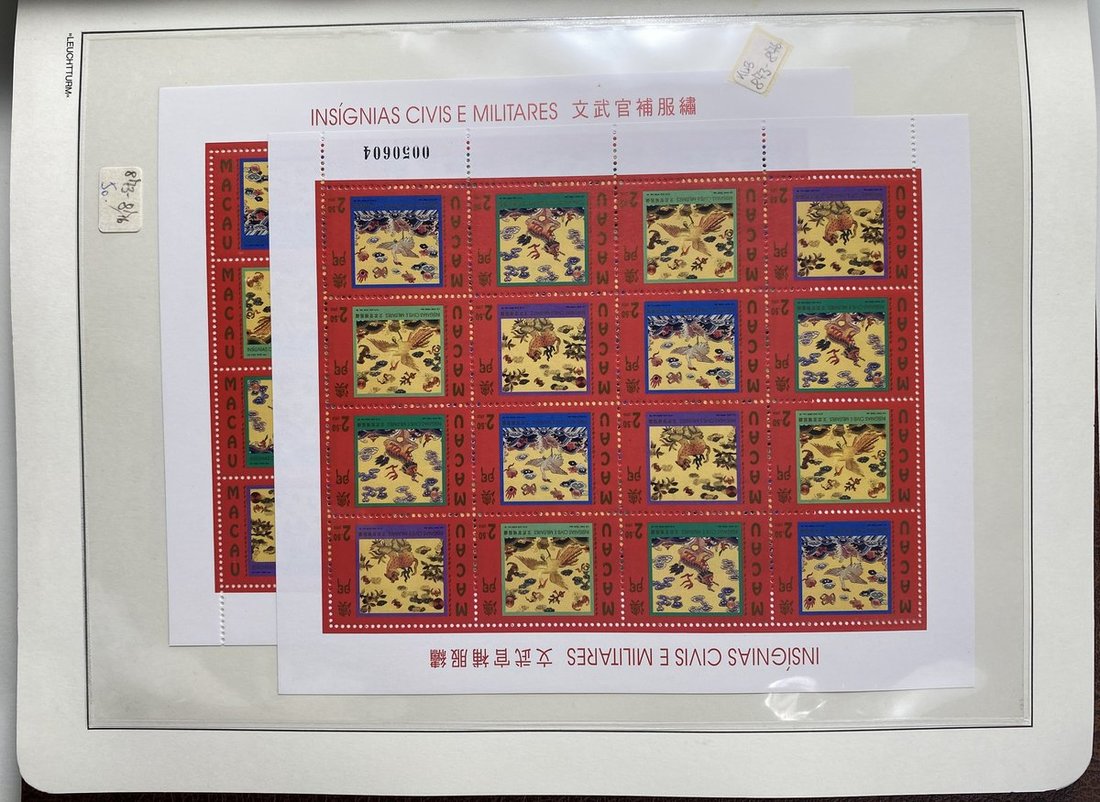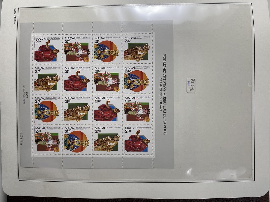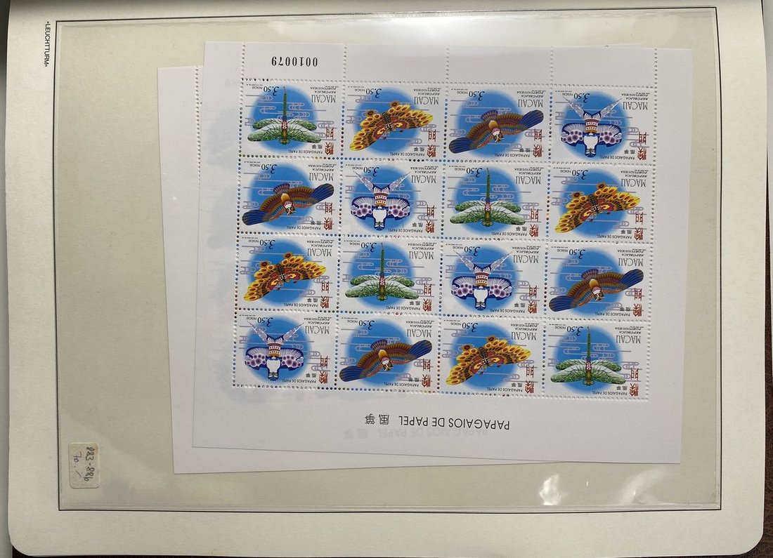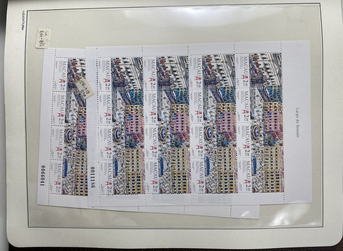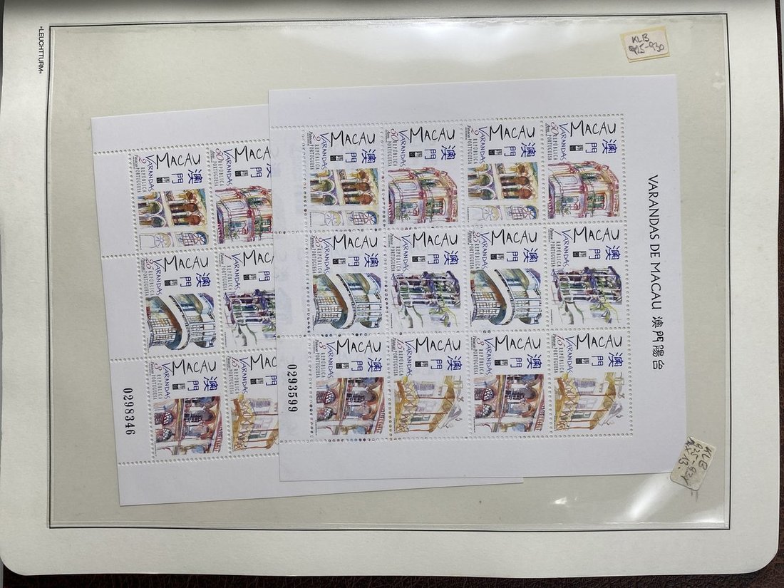A collection of Macau stamps from 1884 to 2001 in four albums, including Portuguese Colonies 1939-40 New York Expo. overprints in set of eight, also some stamp booklets, airmail stamps, souvenir sheets, some dupilcate material, mainly unused, mixed condition. A marvelous basis for further expansion into a completed Macau collection. Please review.