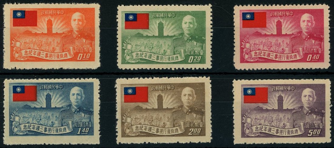 1953 Third Anniversary of Re-election, 10c. to $5 set of six, unused without gum as issued. S.G. 151A-156A