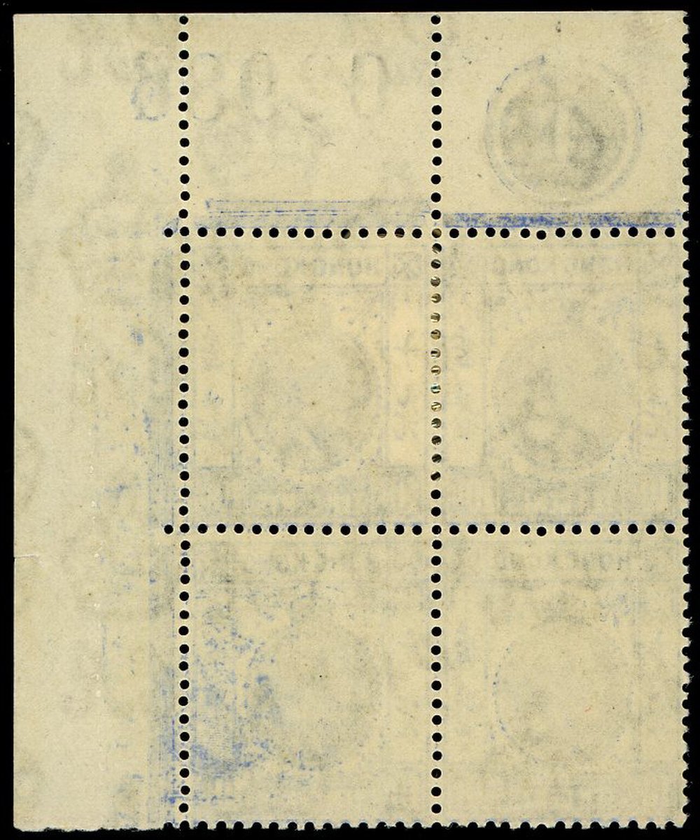 10c. pale blue in a corner plate block of four, sheet number "C2986", some minor adherences on the reverse, otherwise unmounted mint